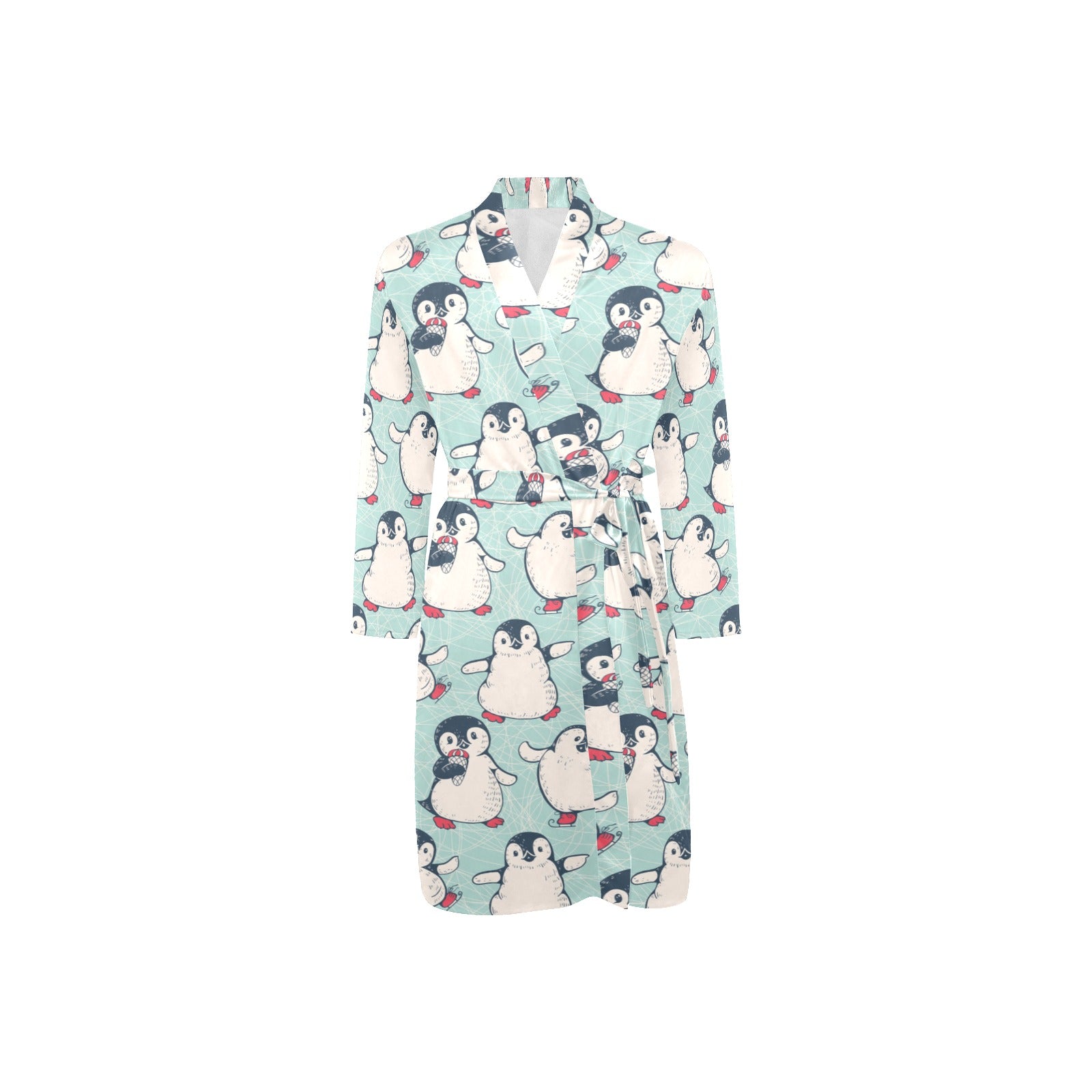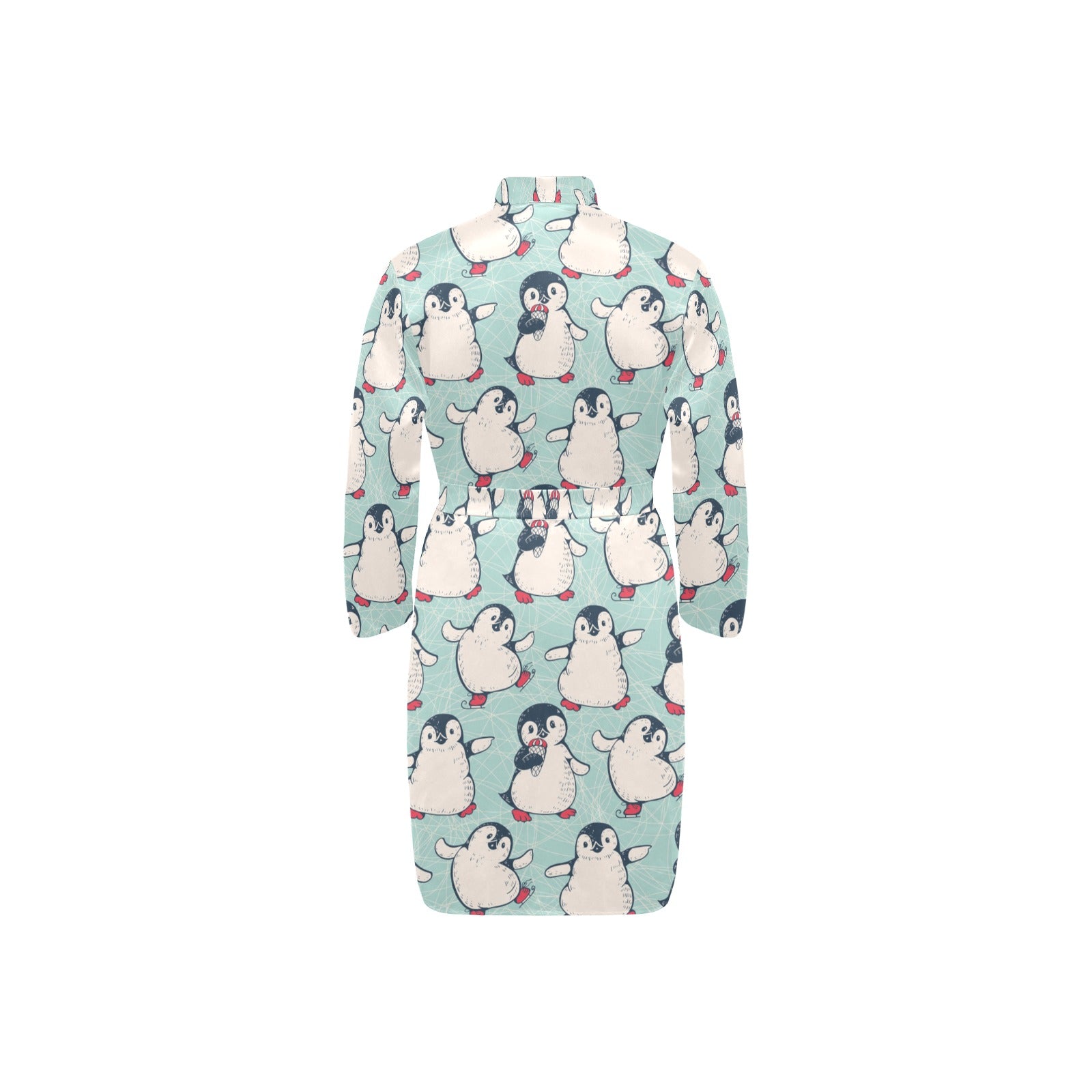 Cute Penguin pattern Men's Long Sleeve Belted Night Robe