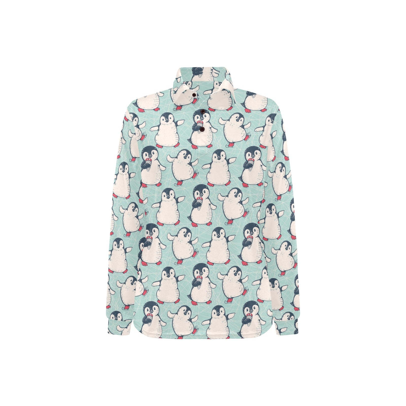 Cute Penguin pattern Women's Long Sleeve Polo Shirt