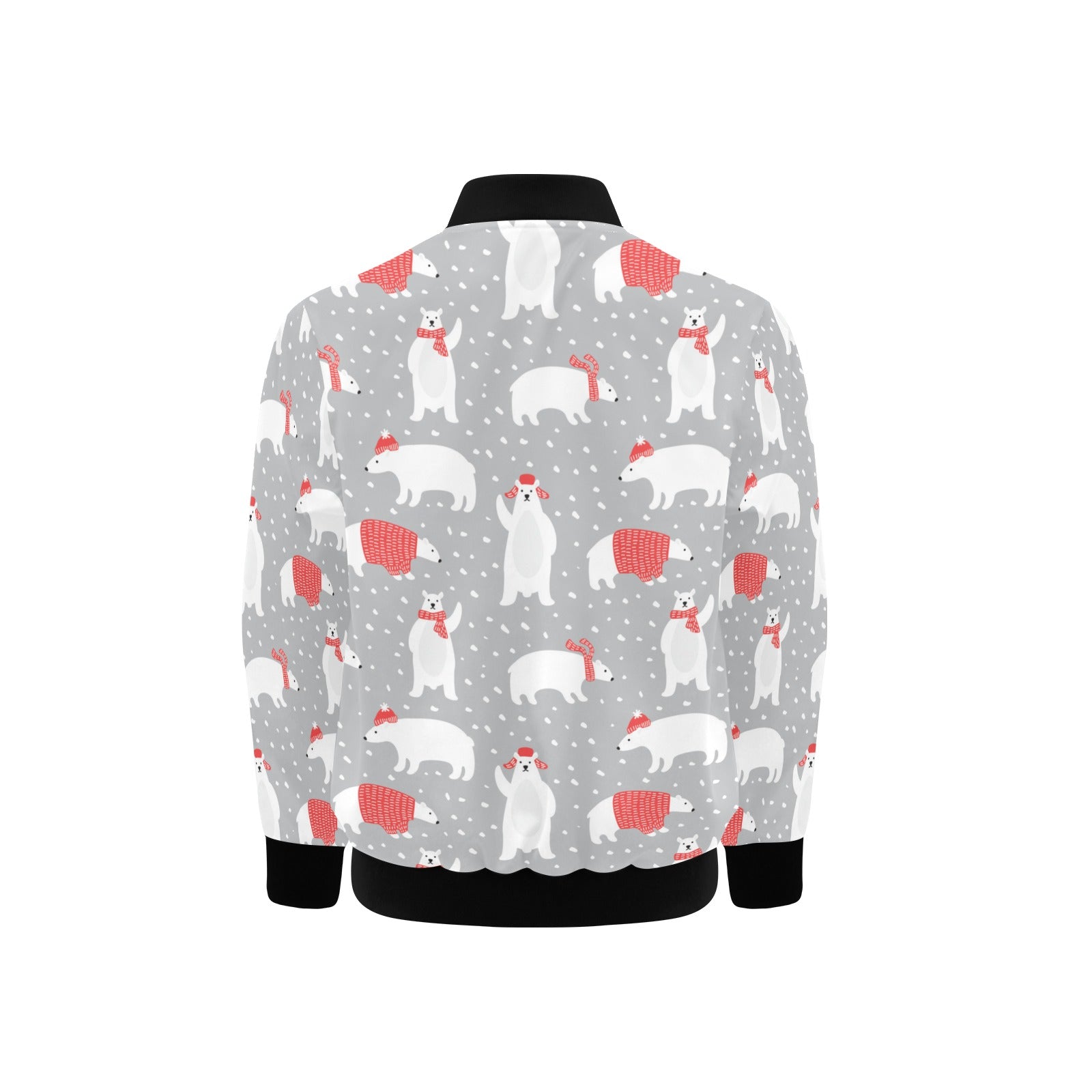 Cute polar bear christmas snow pattern Kids' Boys' Girls' Bomber Jacket