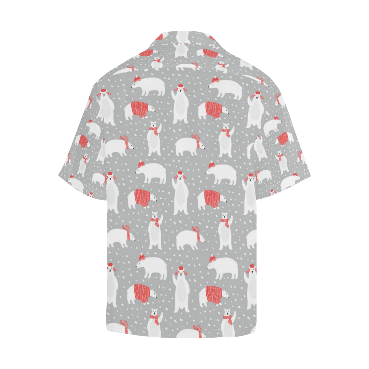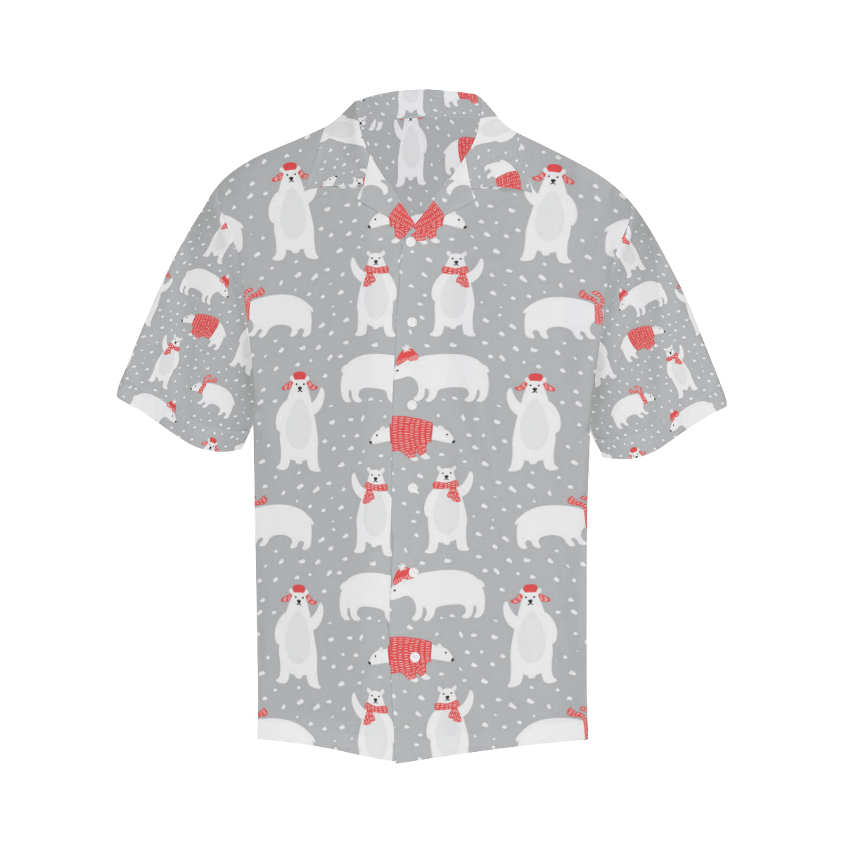 Cute polar bear christmas snow pattern Men's All Over Print Hawaiian Shirt