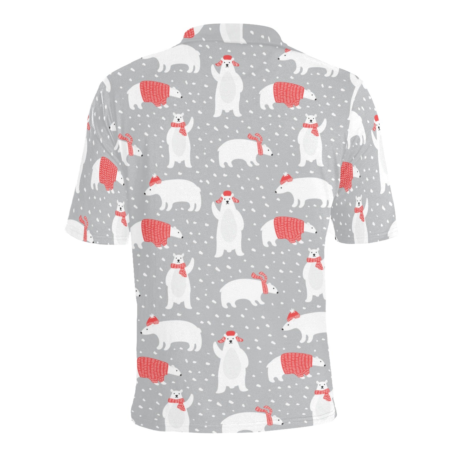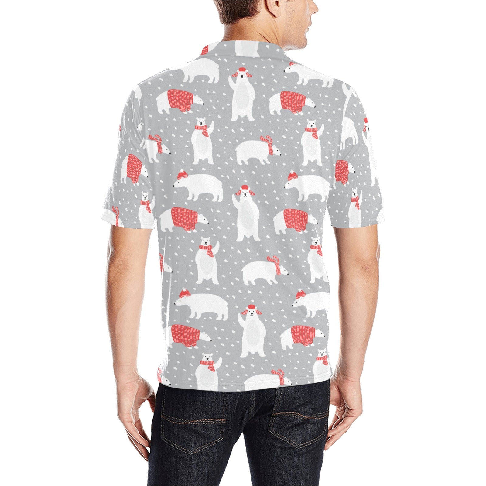 Cute polar bear christmas snow pattern Men's All Over Print Polo Shirt