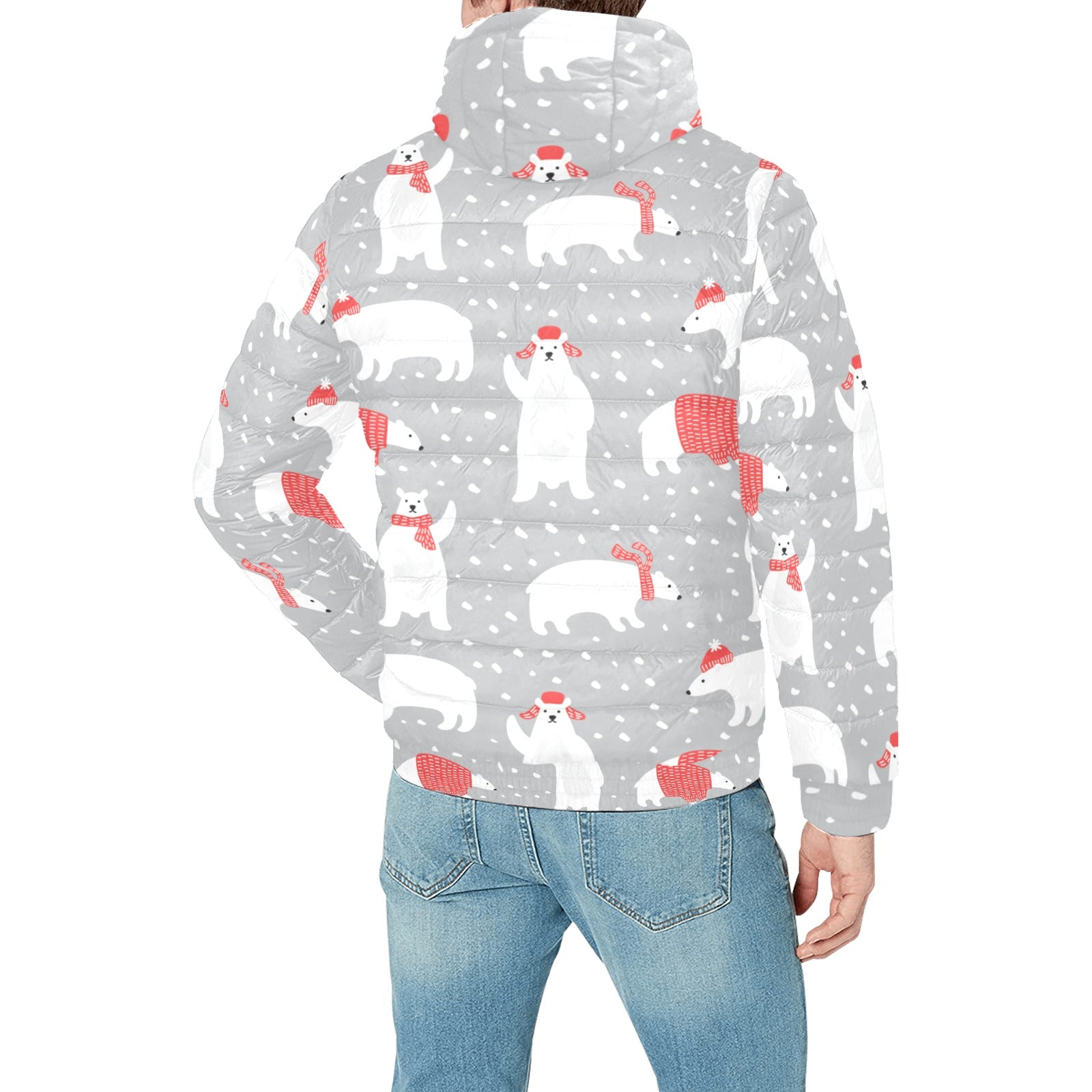 Cute polar bear christmas snow pattern Men's Padded Hooded Jacket