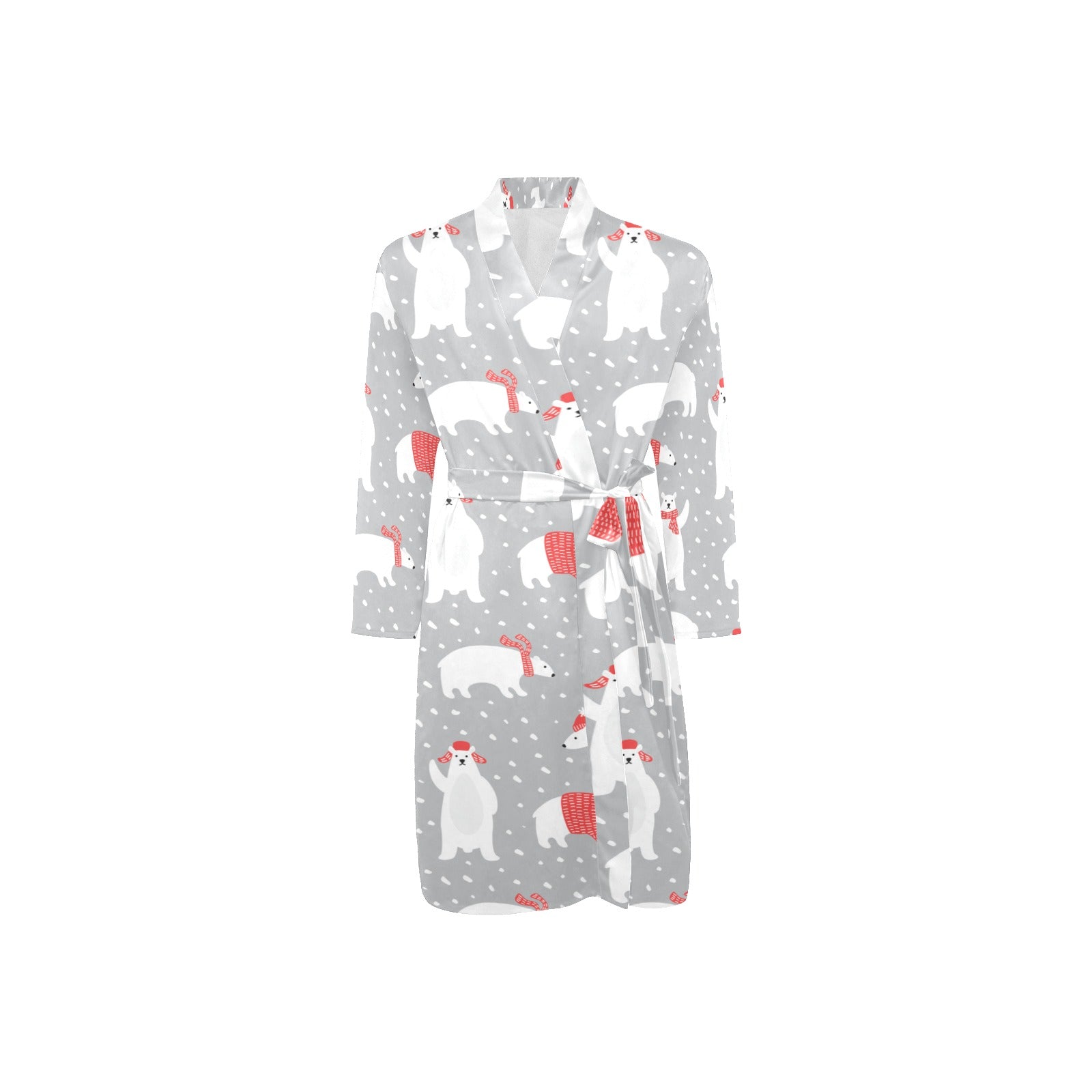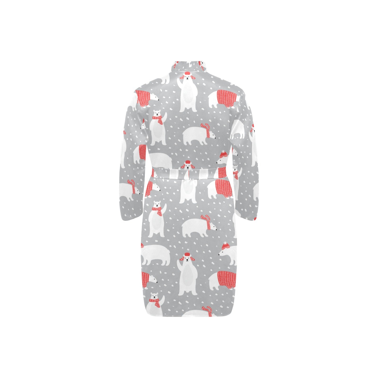 Cute polar bear christmas snow pattern Men's Long Sleeve Belted Night Robe