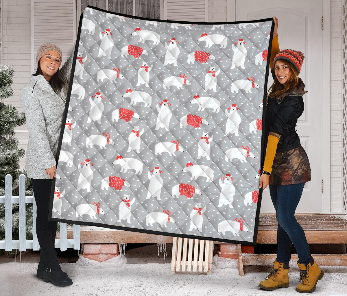 Cute Polar Bear Christmas Snow Pattern Premium Quilt is a uniqued design and limited item. It made to order, hand printed, and sewn with love in our factory.