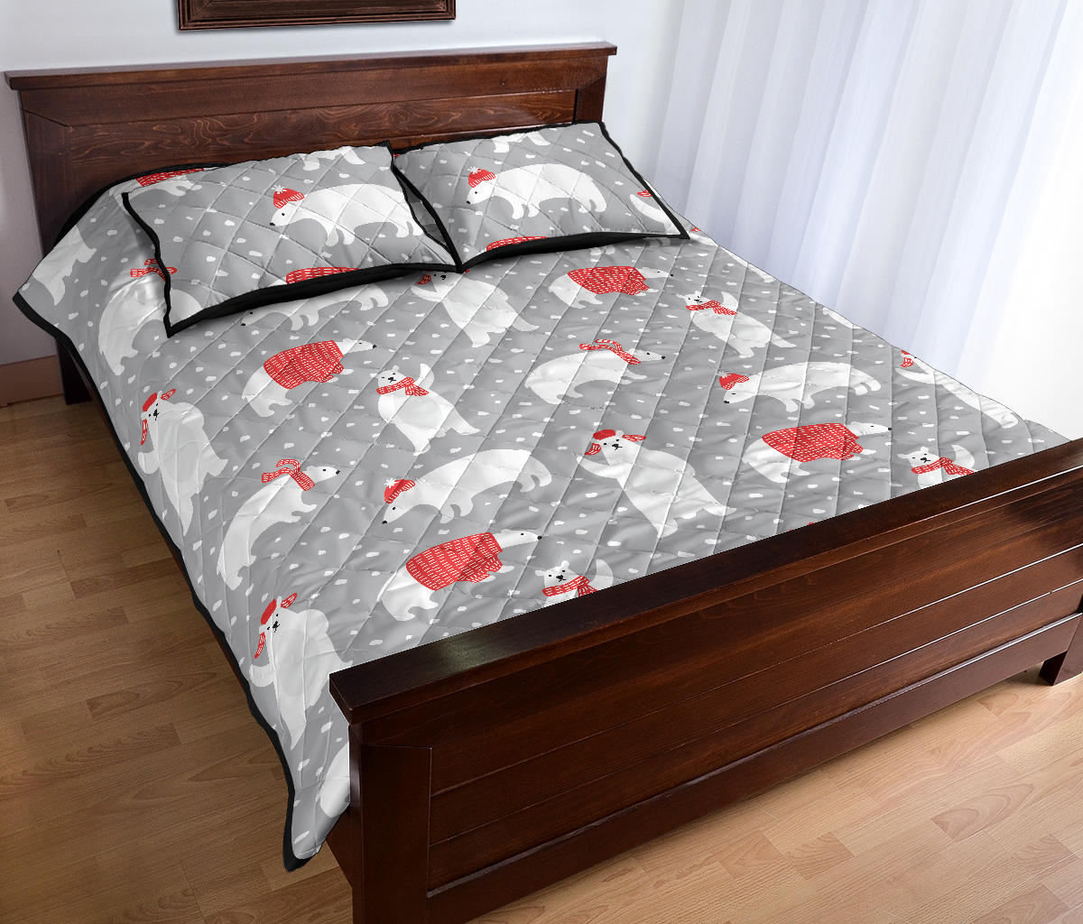 Cute polar bear christmas snow pattern Quilt Bed Set
