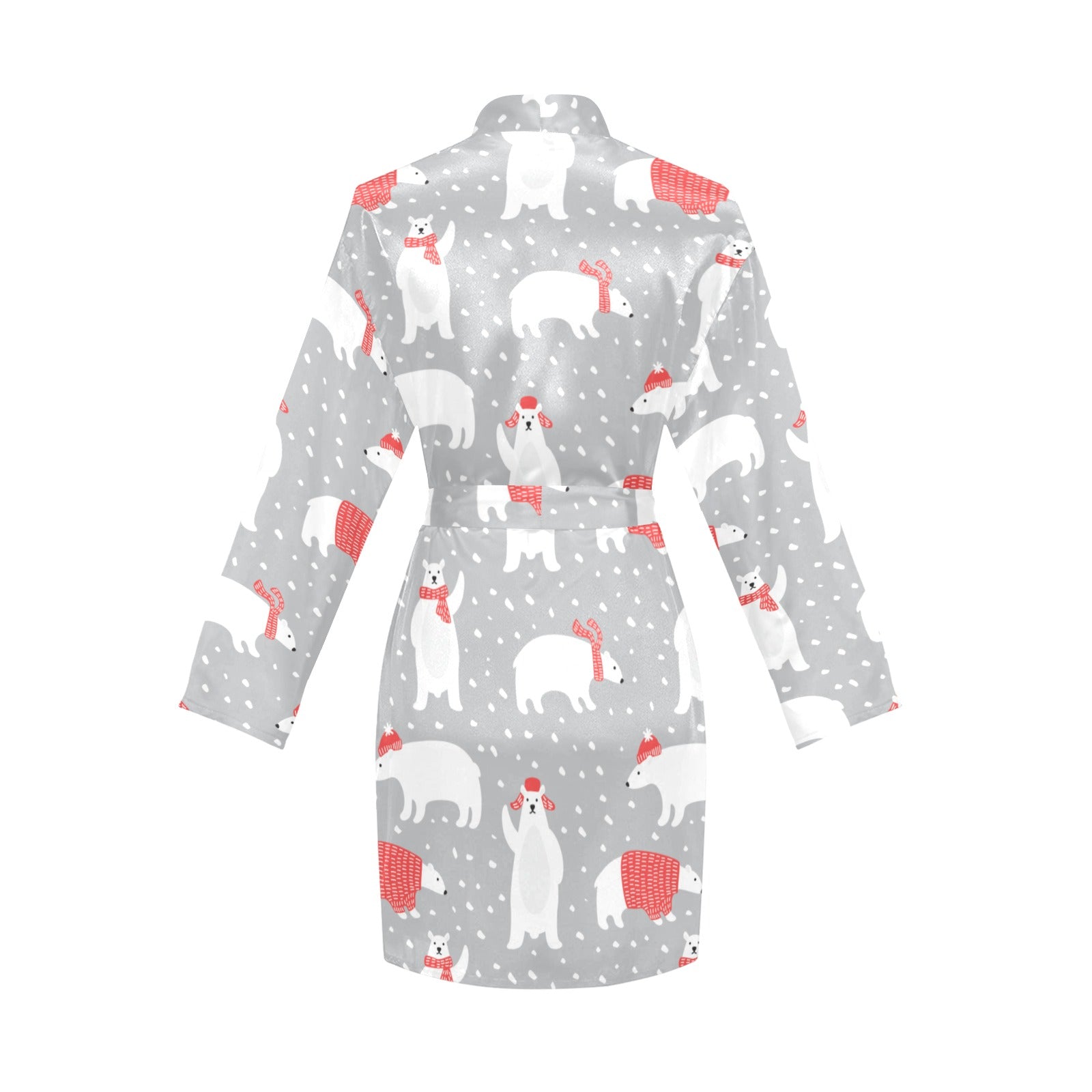 Cute polar bear christmas snow pattern Women's Long Sleeve Belted Night Robe