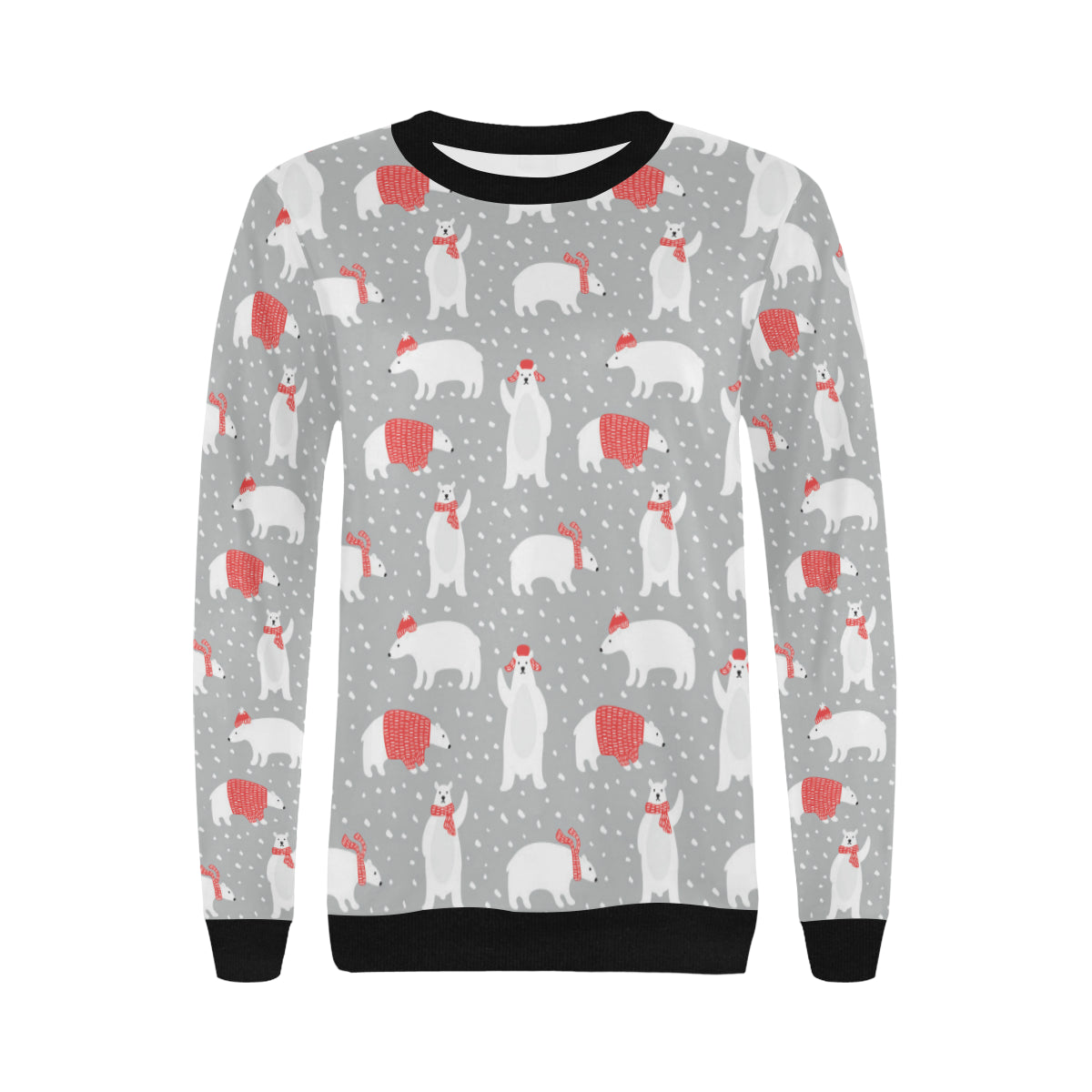 Cute polar bear christmas snow pattern Women's Crew Neck Sweatshirt