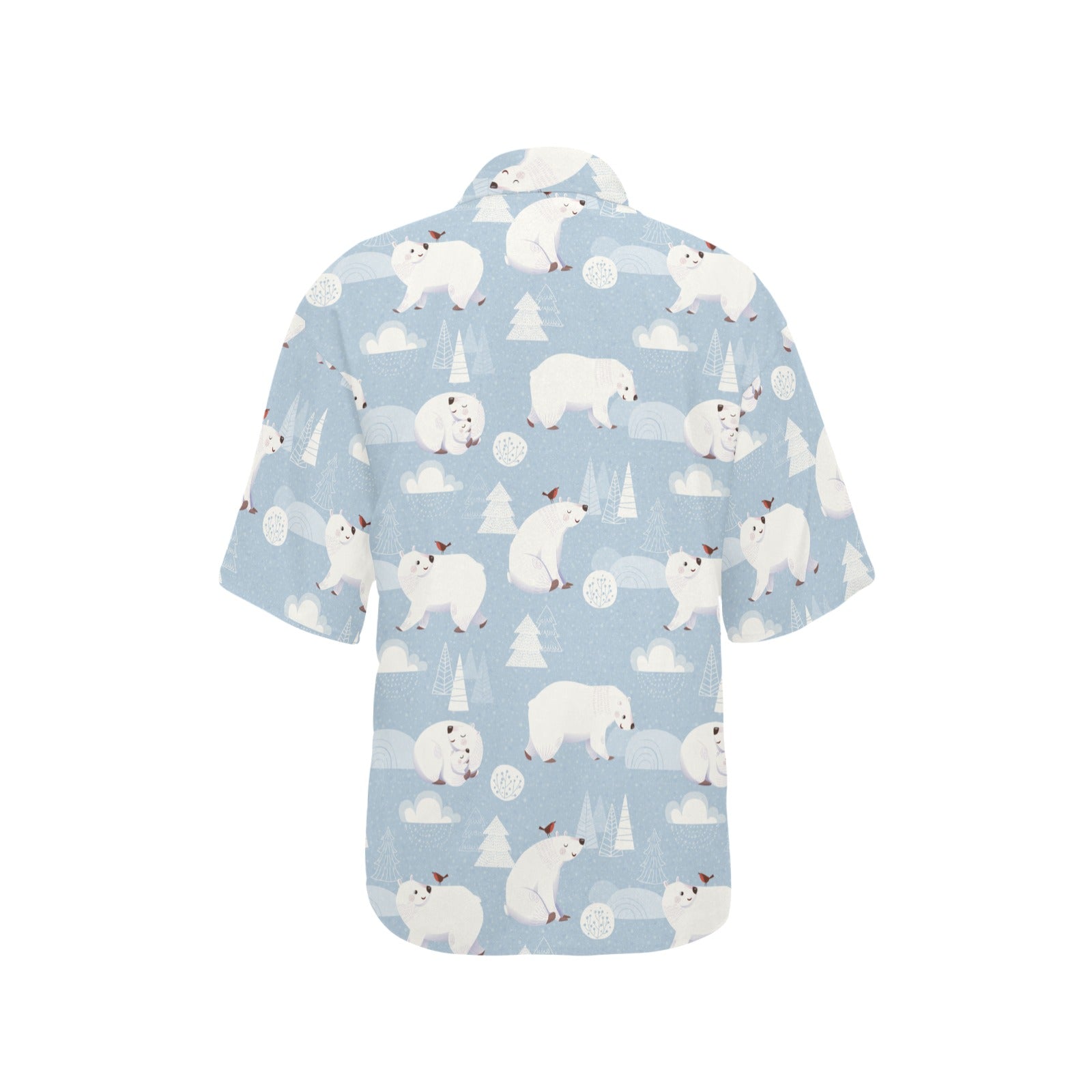 Cute polar bears Christmas decoration pattern Women's All Over Print Hawaiian Shirt