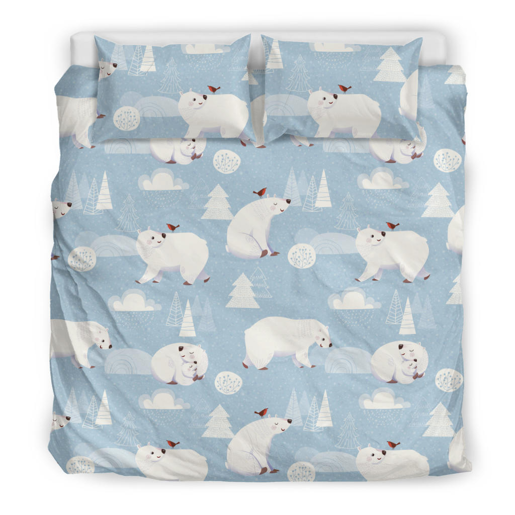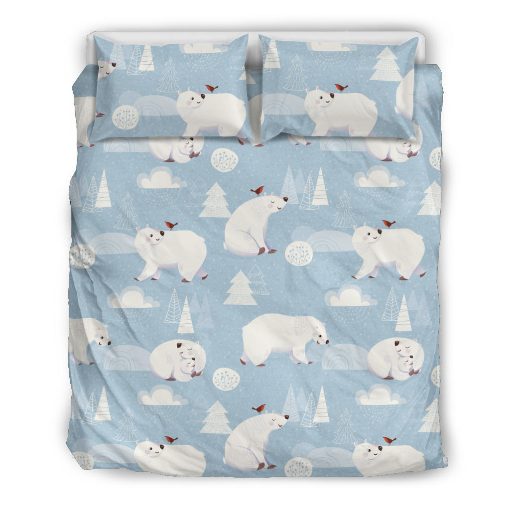 Cute polar bears Christmas decoration pattern Bedding Set. is a uniqued design and limited item. It made to order, hand printed, and sewn with love in our factory.