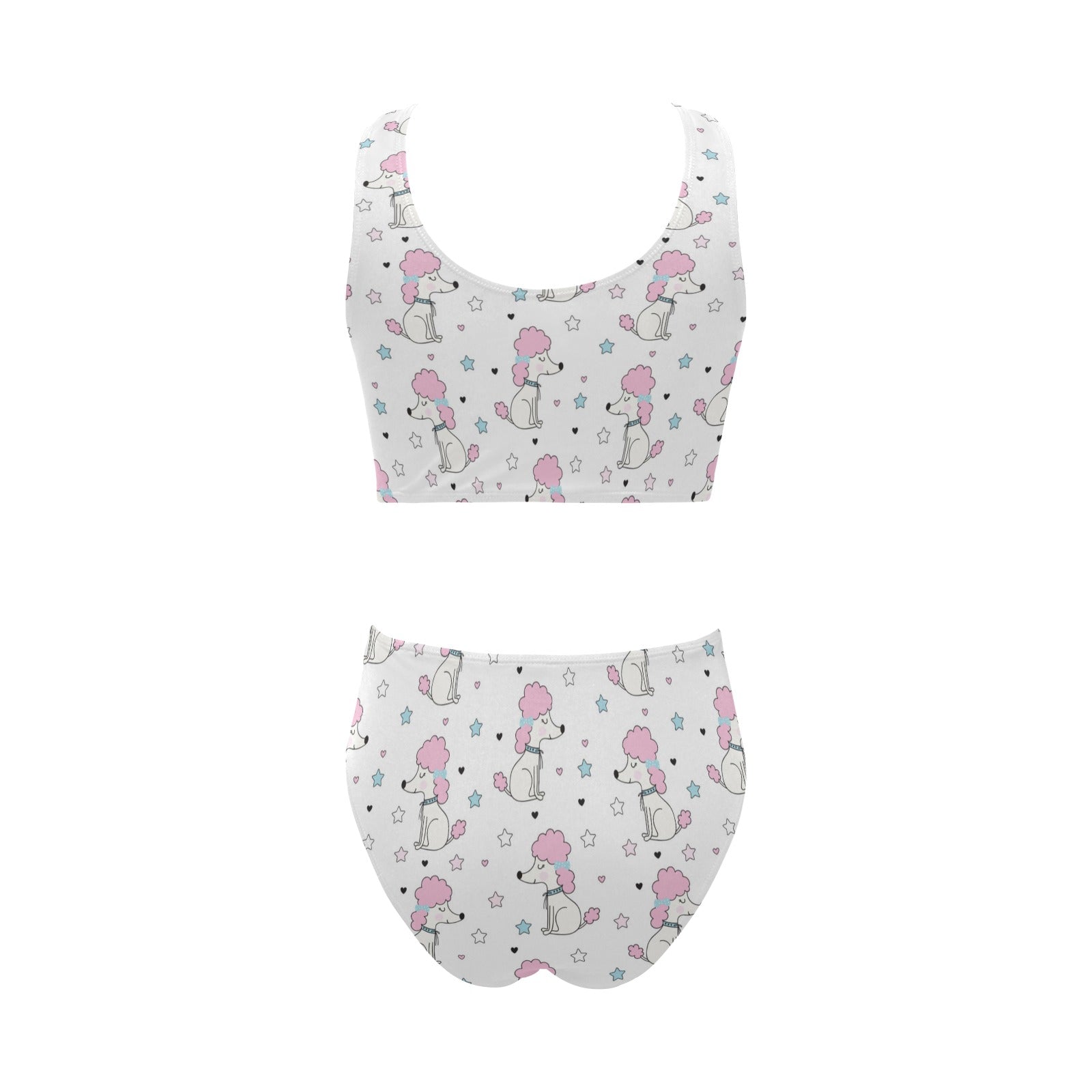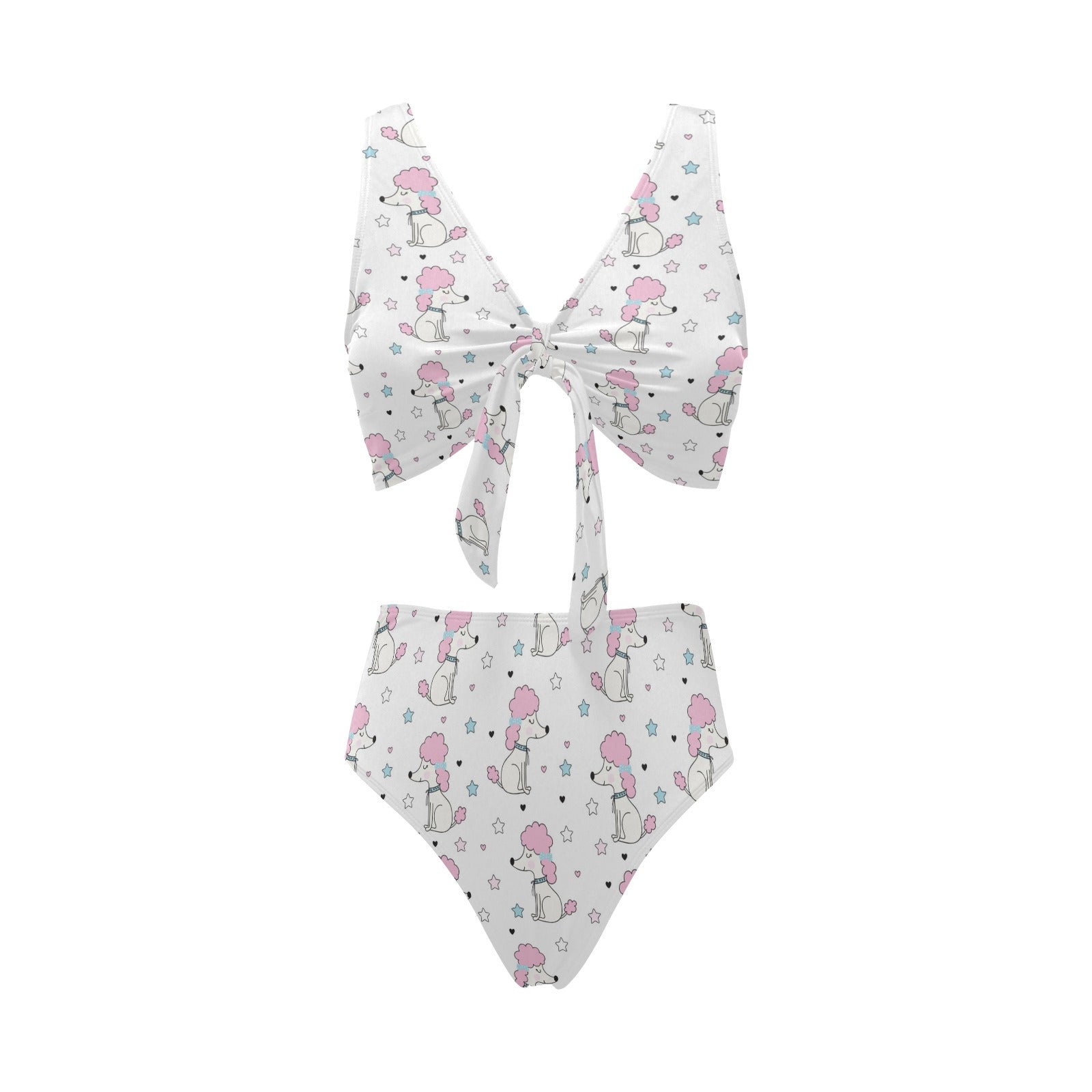 Cute poodle dog star pattern Chest Bowknot High Waisted Bikini Swimsuit