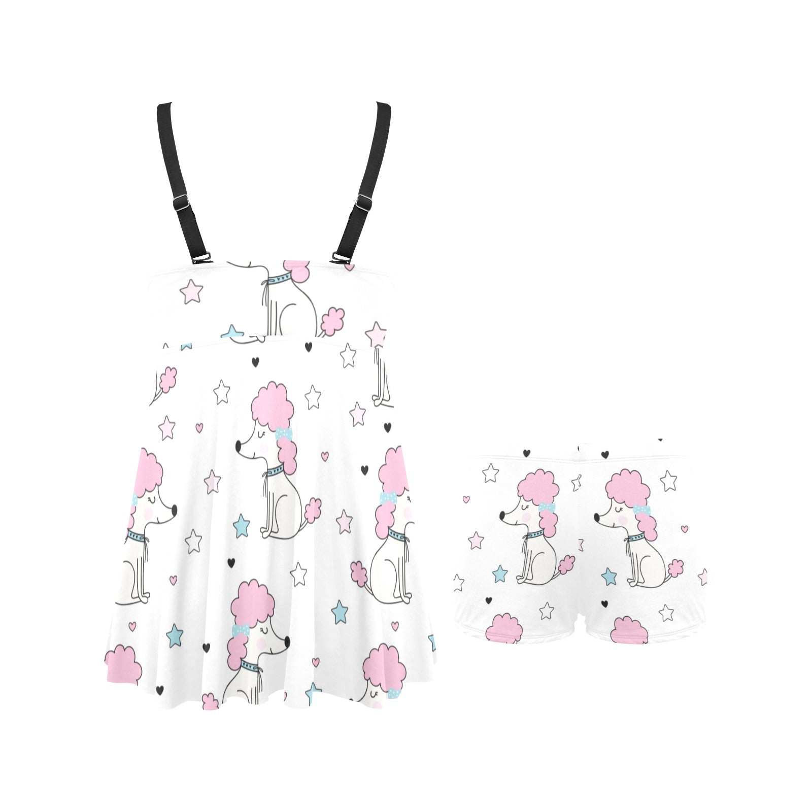 Cute poodle dog star pattern Chest Sexy Pleated Two Piece Swim Dress