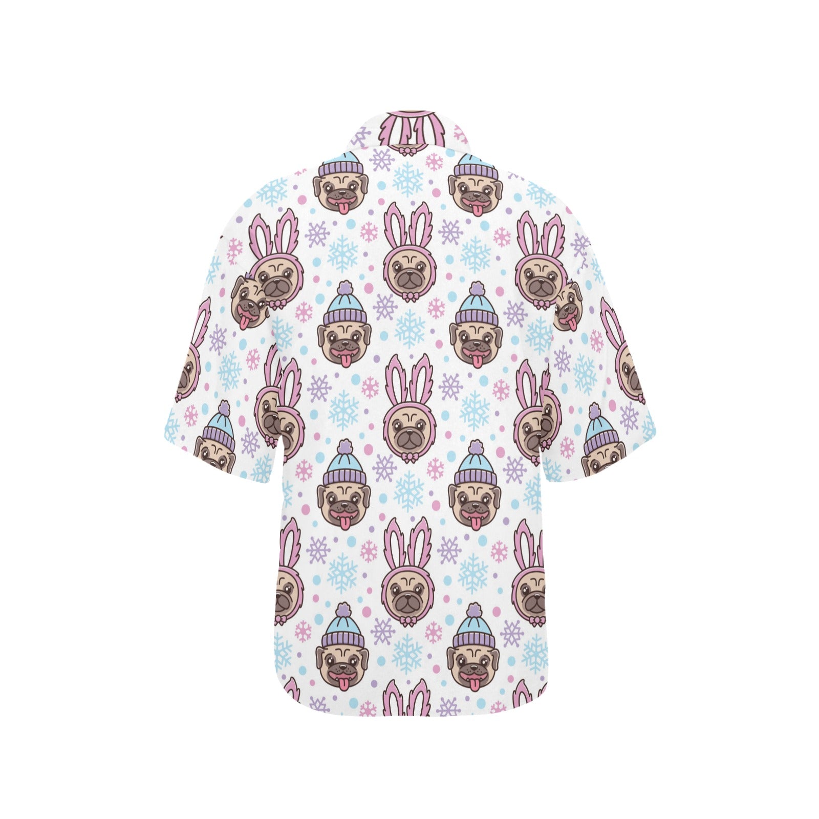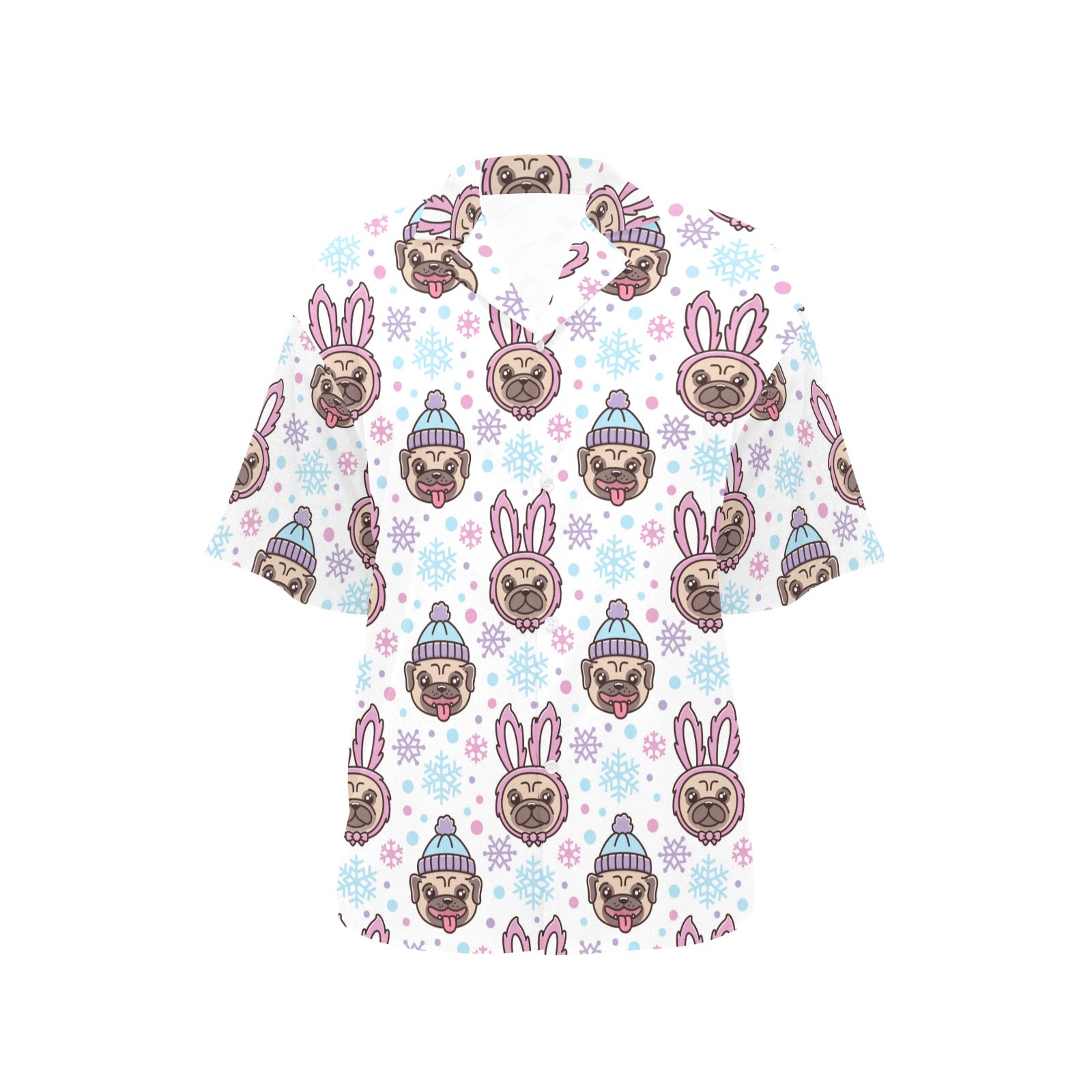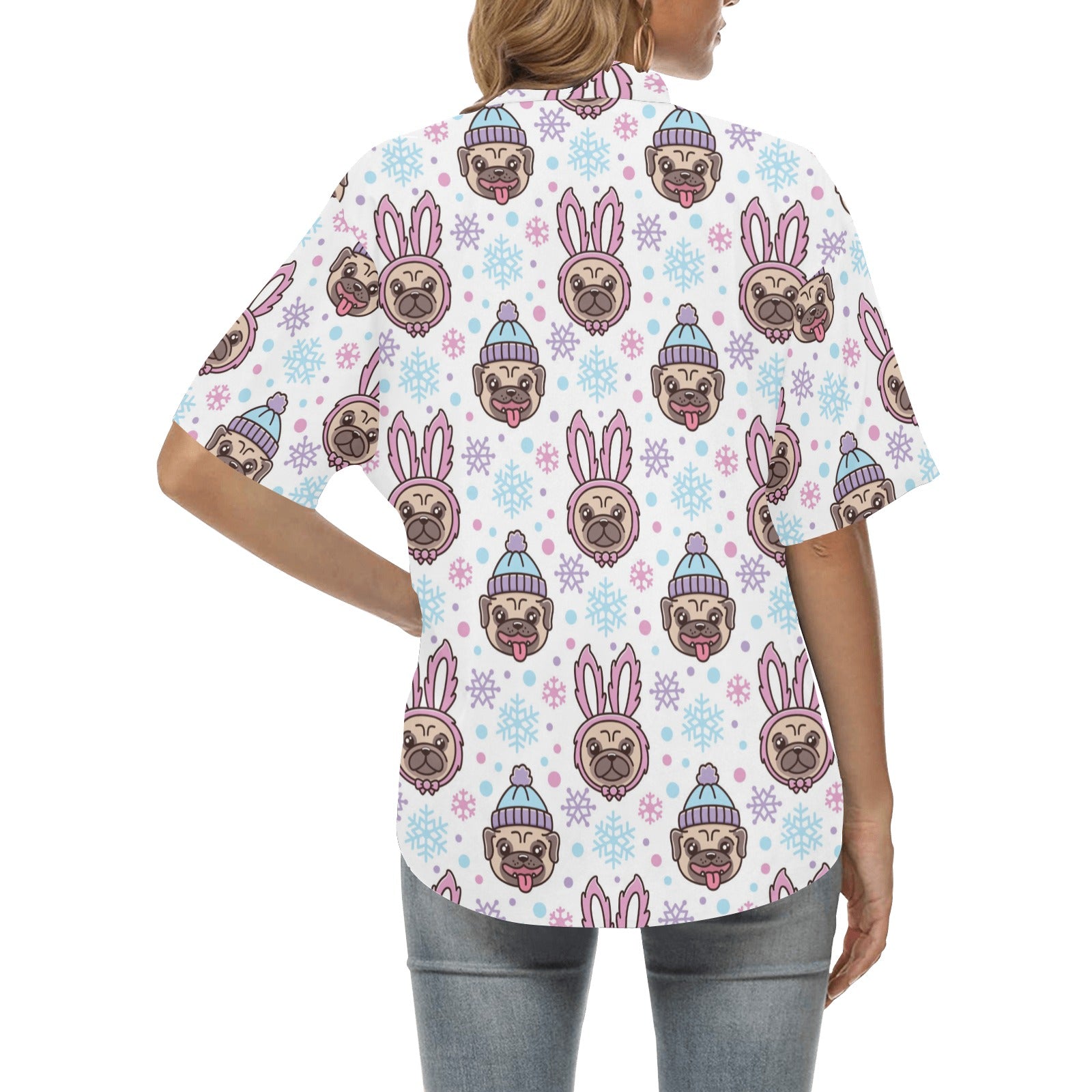 Cute pug hat rabbit costume pattern Women's All Over Print Hawaiian Shirt