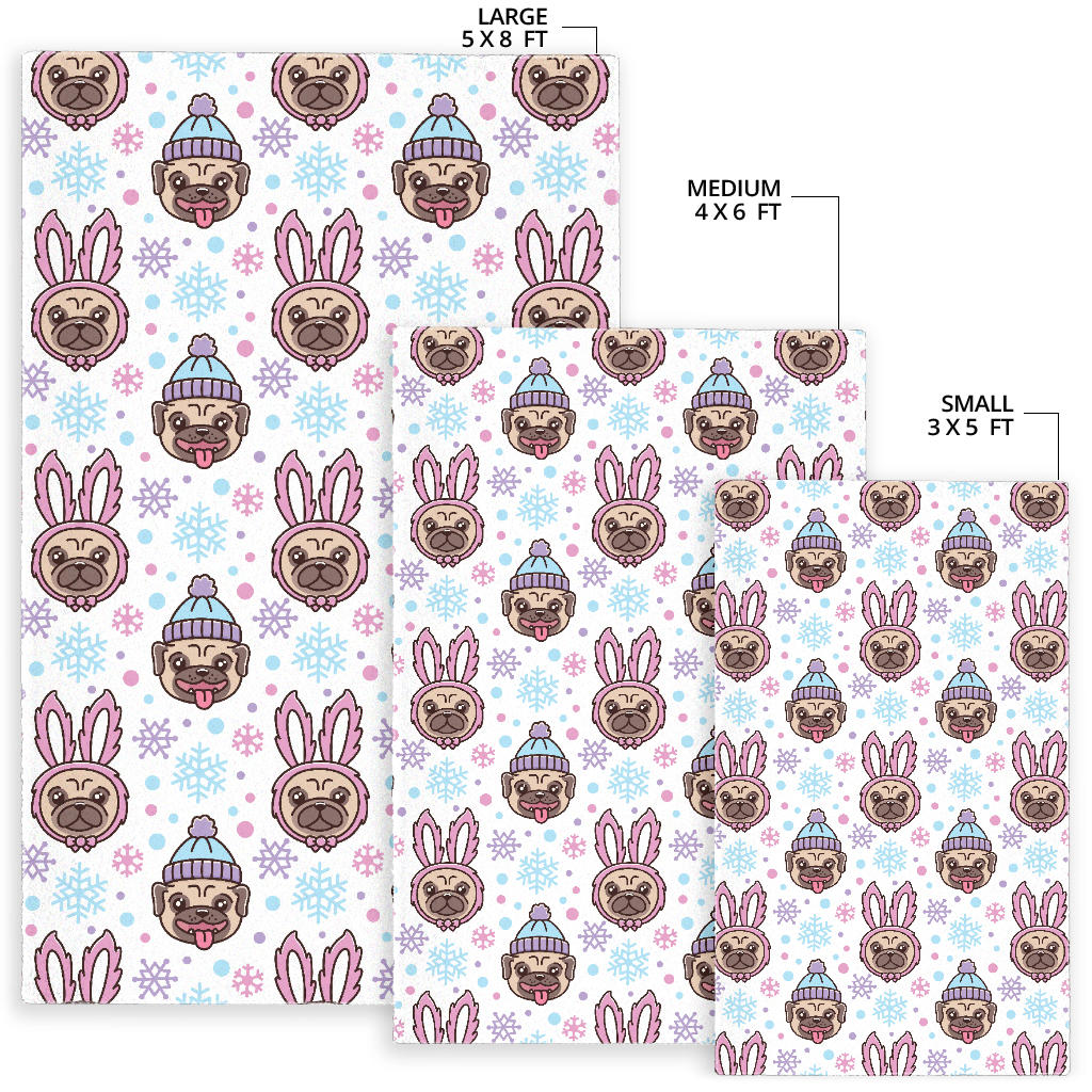 Cute pug hat rabbit costume pattern Area Rug is a uniqued design and limited item. It made to order, hand printed, and sewn with love in our factory.