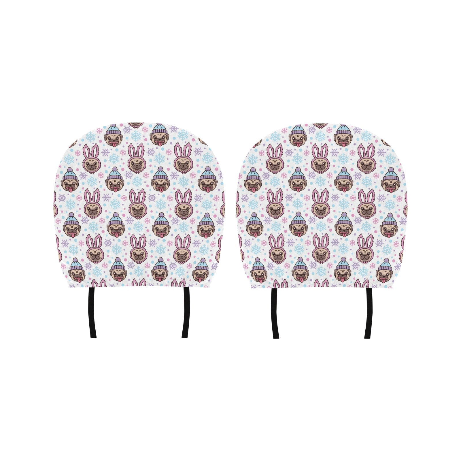 Cute pug hat rabbit costume pattern Car Headrest Cover