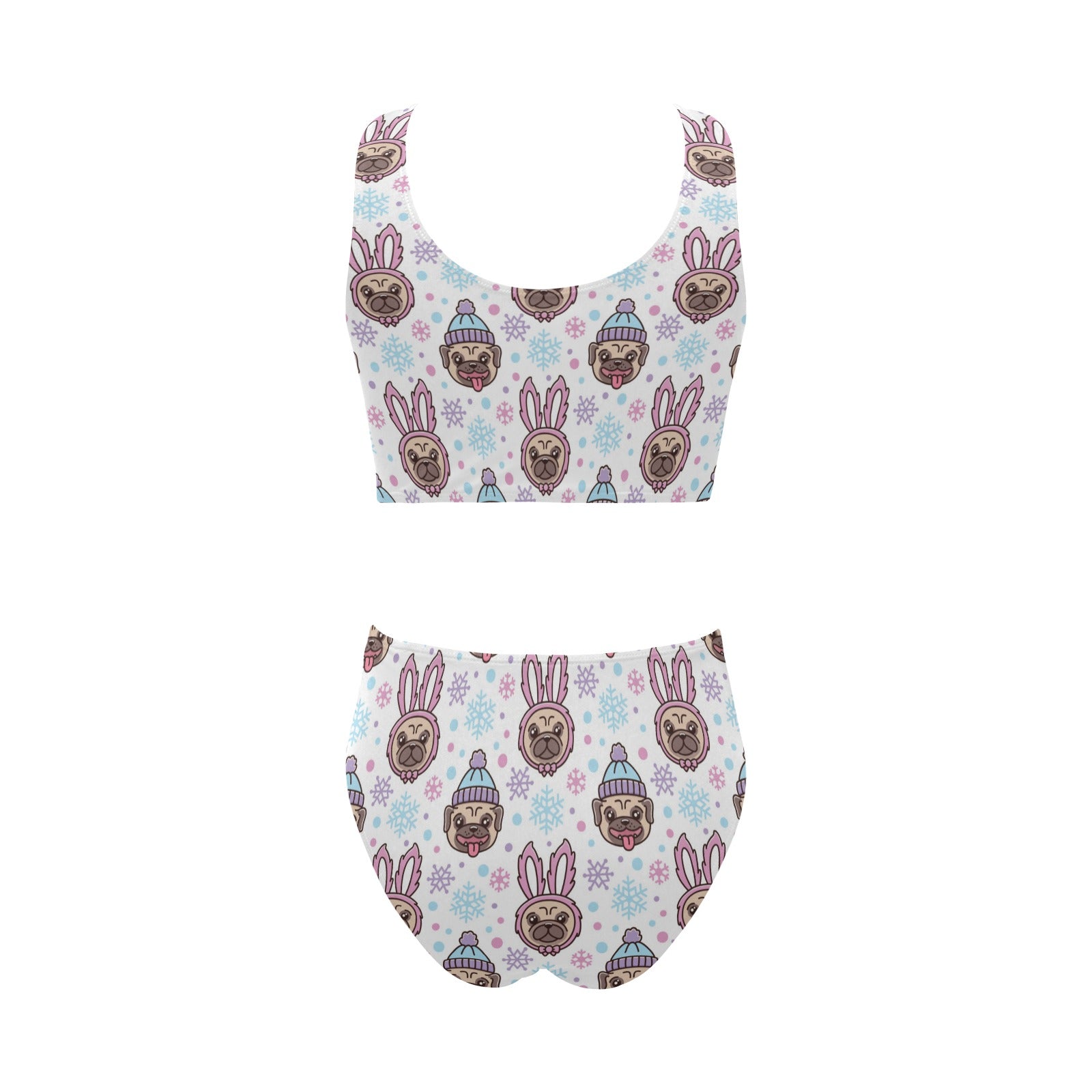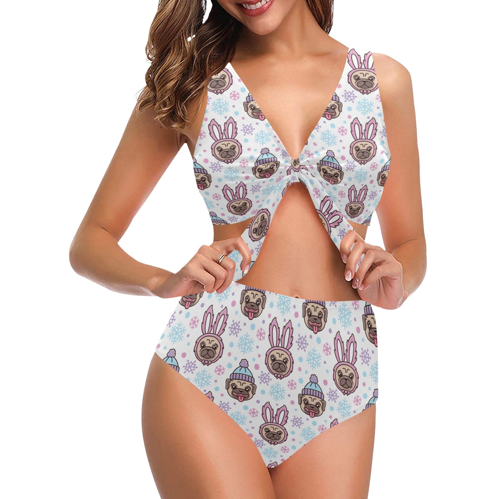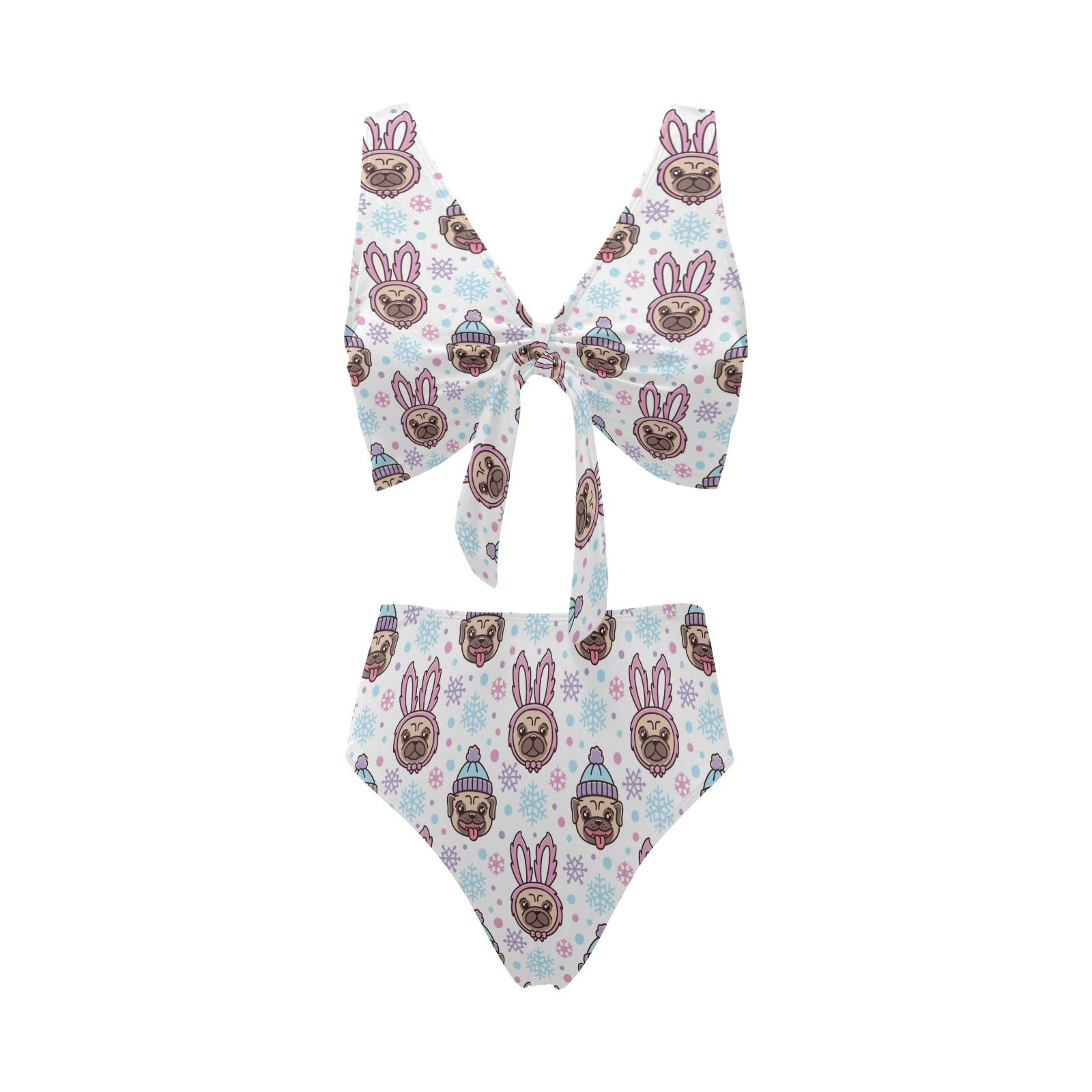 Cute pug hat rabbit costume pattern Chest Bowknot High Waisted Bikini Swimsuit