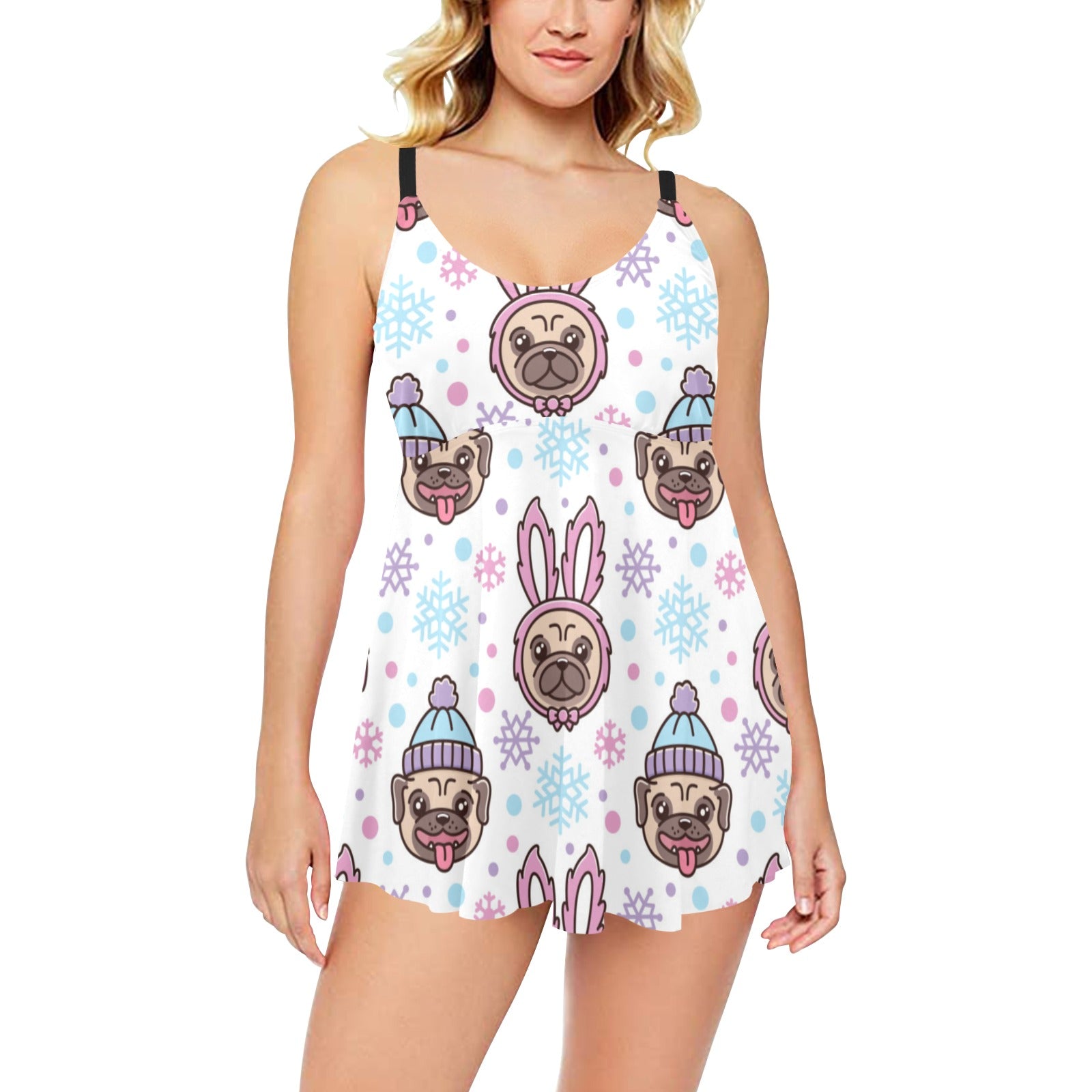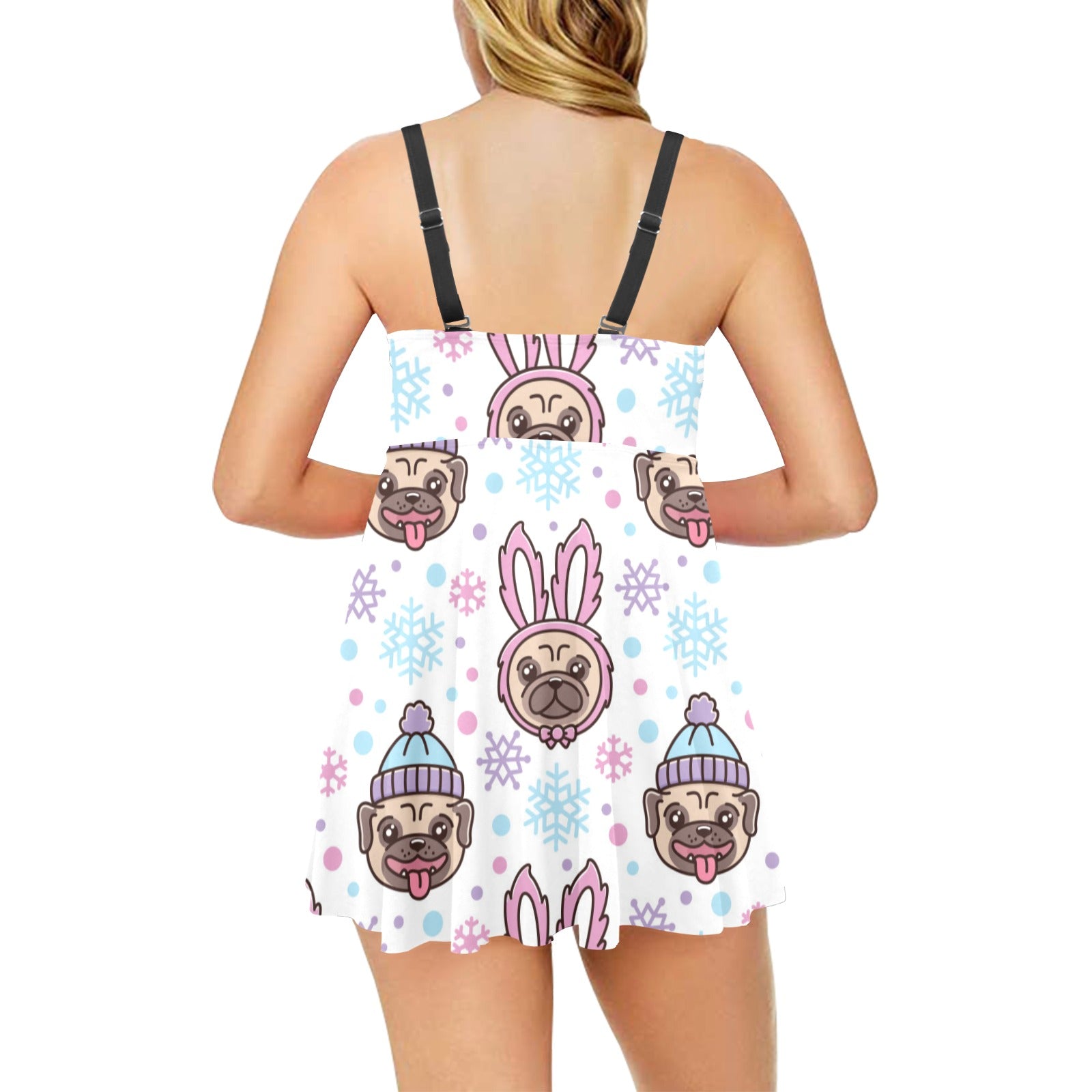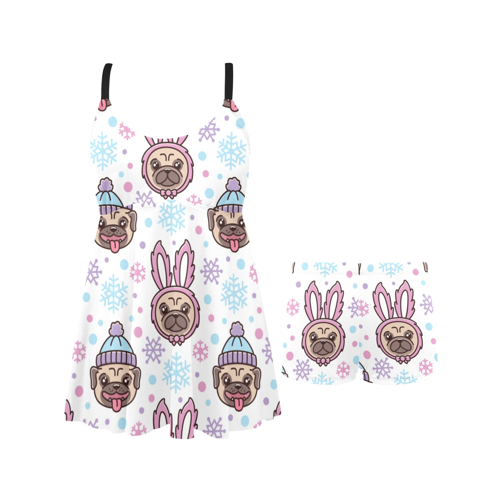 Cute pug hat rabbit costume pattern Chest Sexy Pleated Two Piece Swim Dress