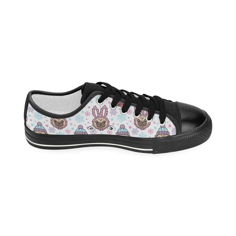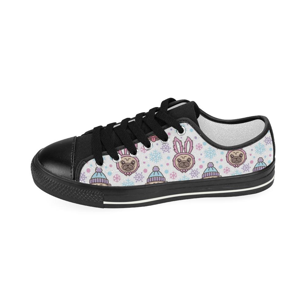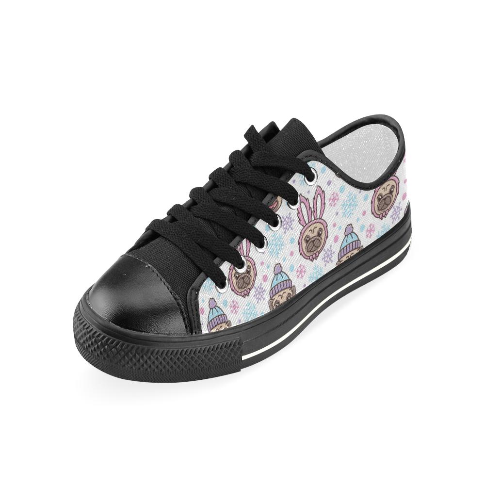 Cute pug hat rabbit costume pattern Kids' Boys' Girls' Low Top Canvas Shoes Black