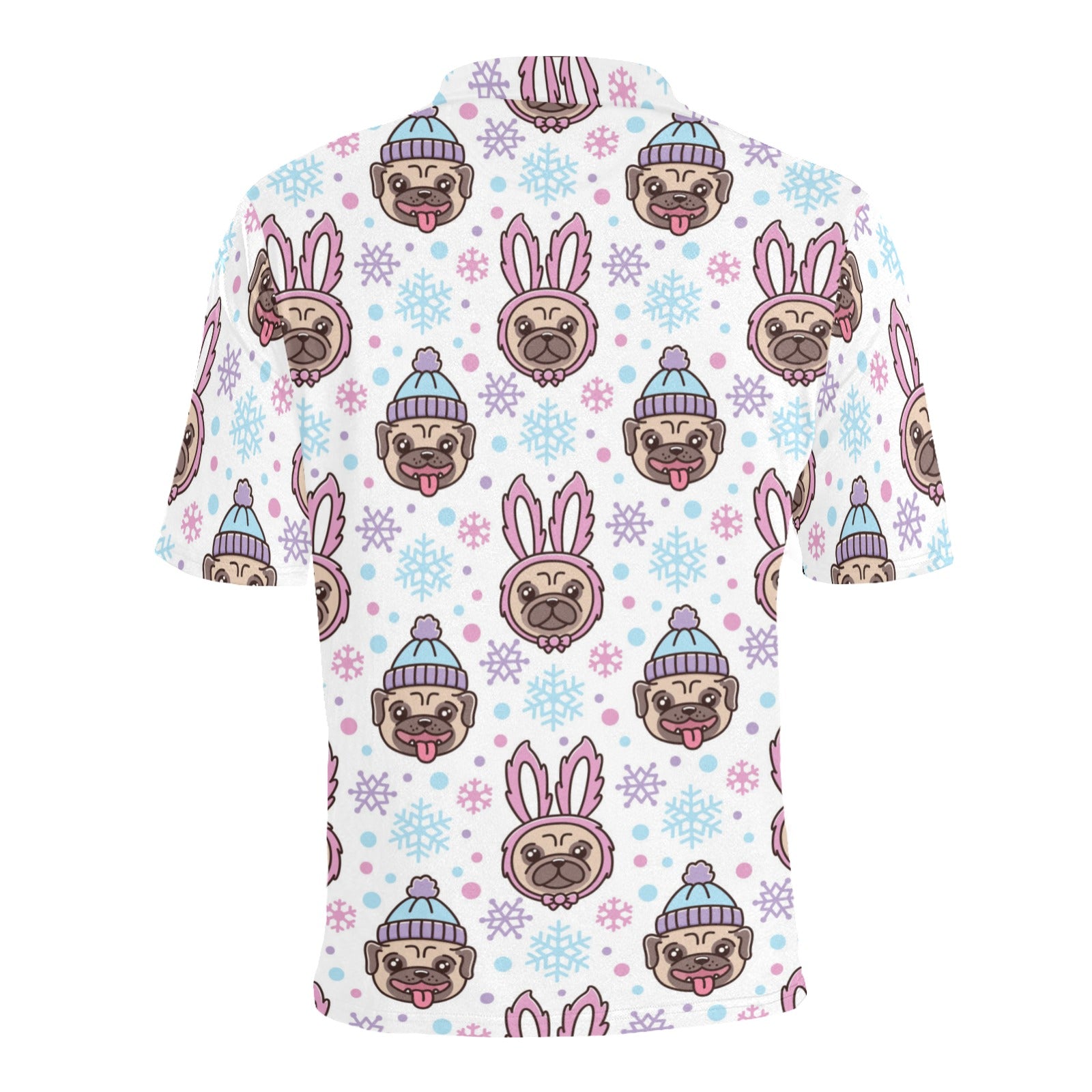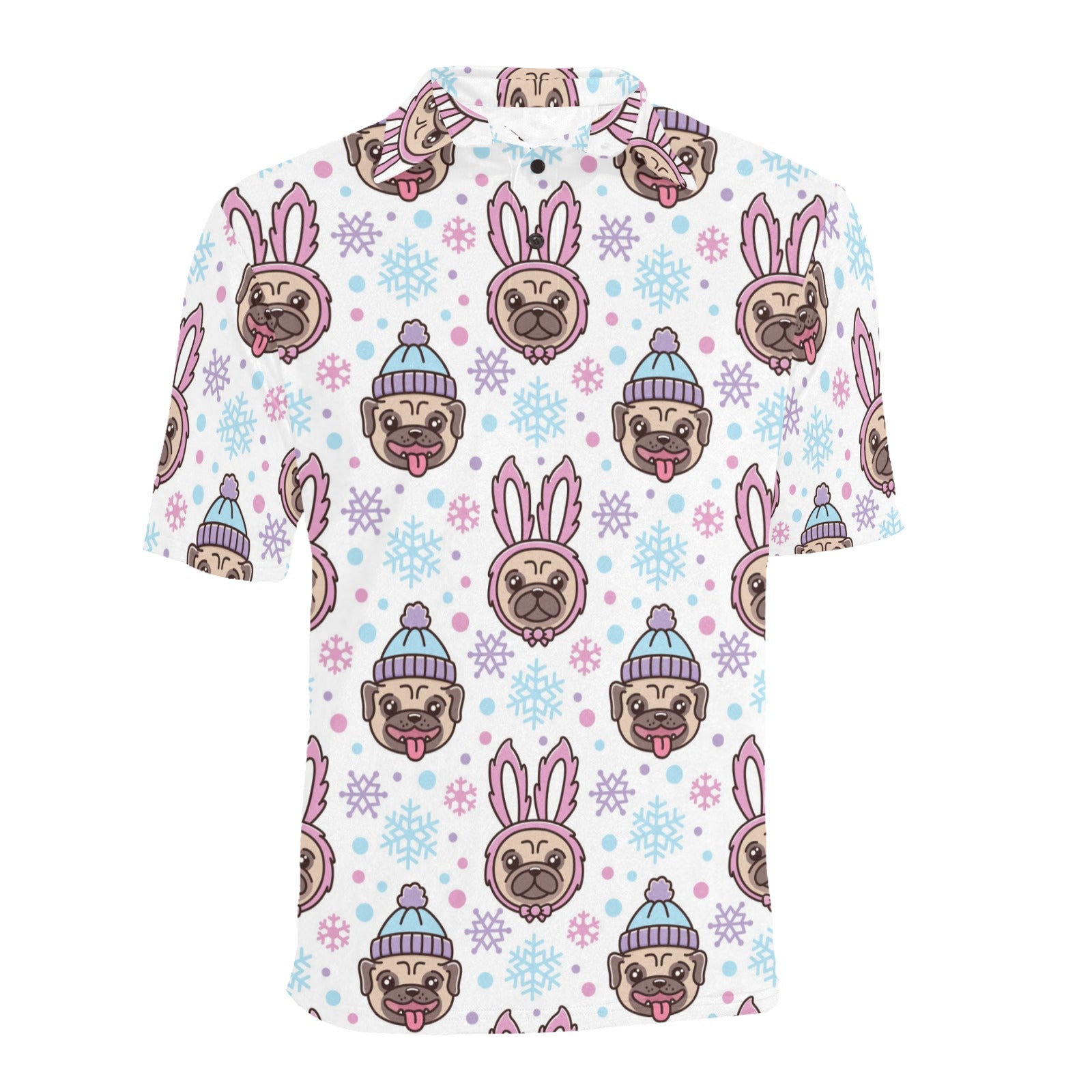Cute pug hat rabbit costume pattern Men's All Over Print Polo Shirt