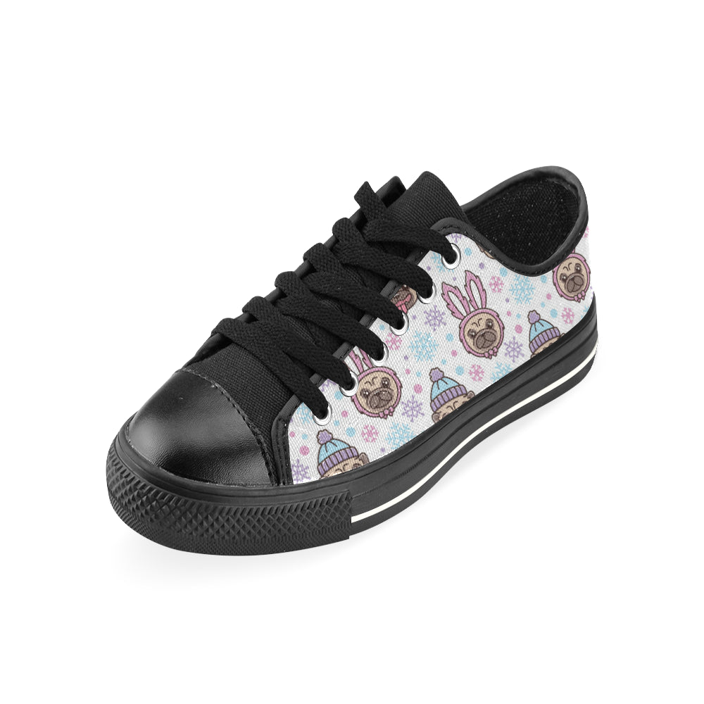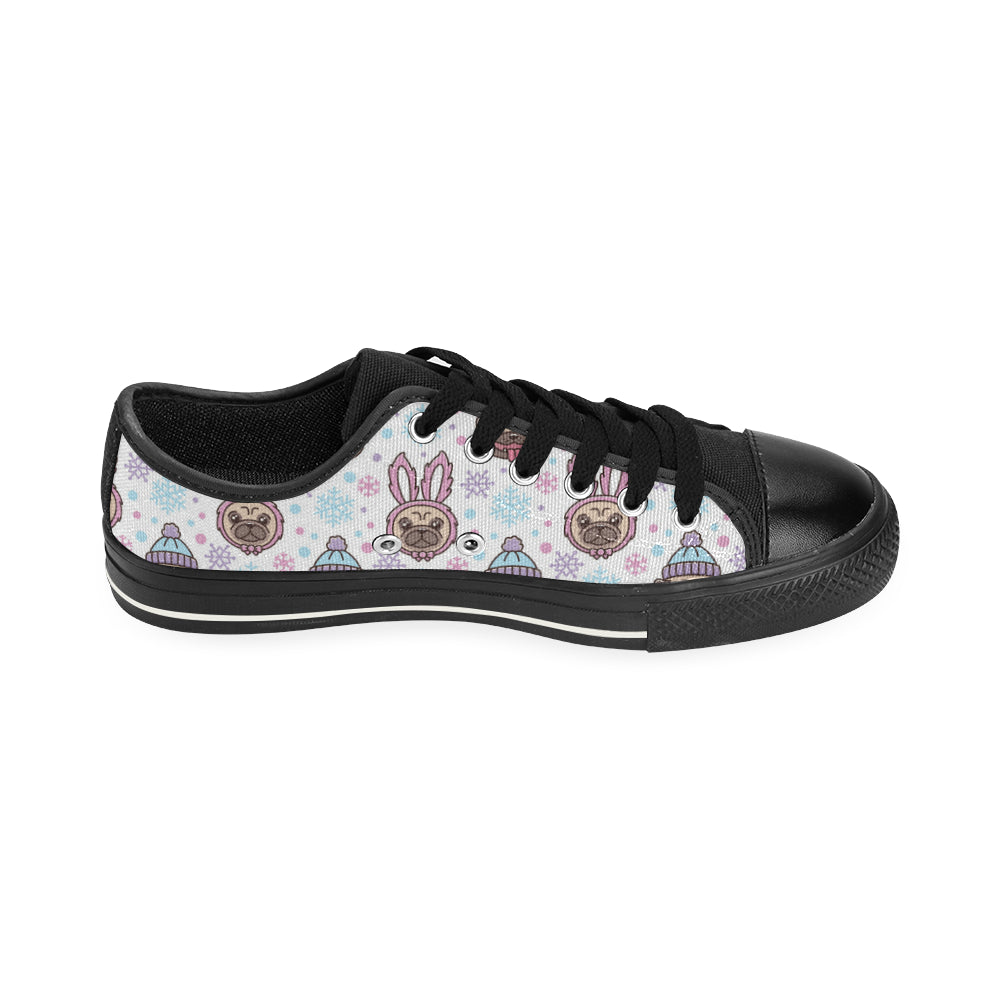Cute pug hat rabbit costume pattern Men's Low Top Canvas Shoes Black