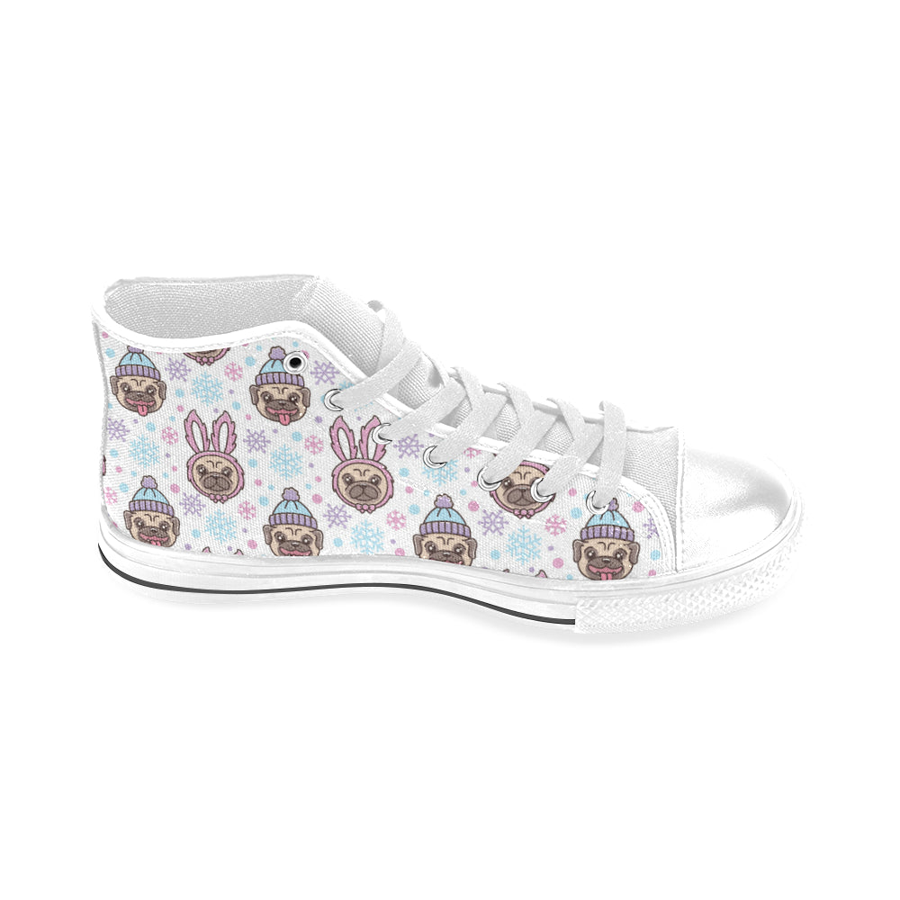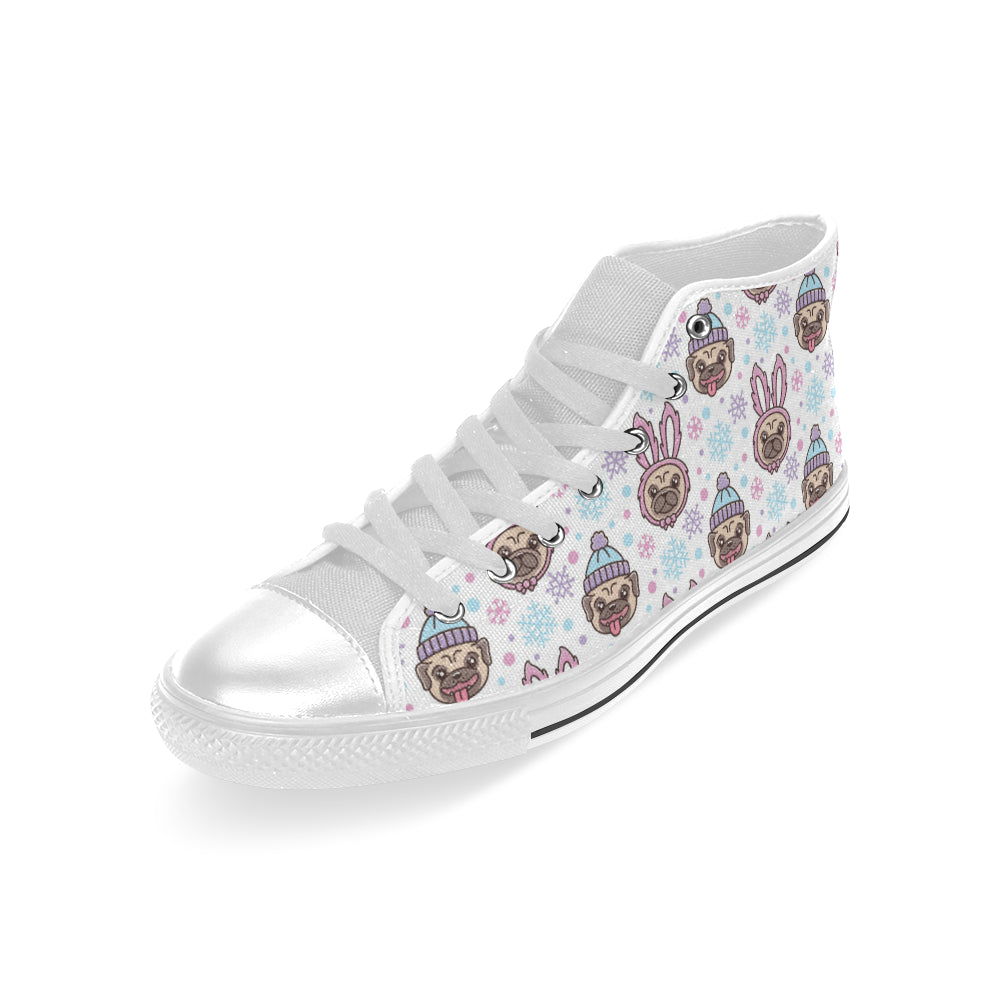 Cute pug hat rabbit costume pattern Men's High Top Canvas Shoes White