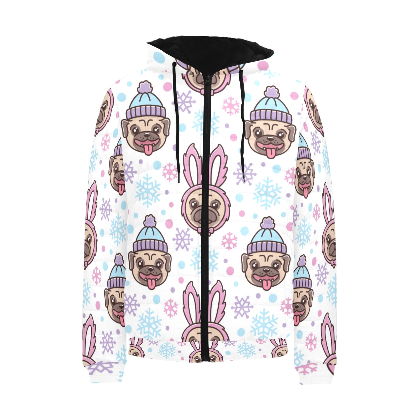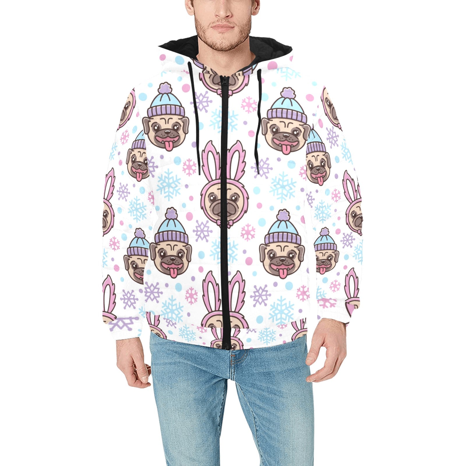 Cute pug hat rabbit costume pattern Men's Padded Hooded Jacket