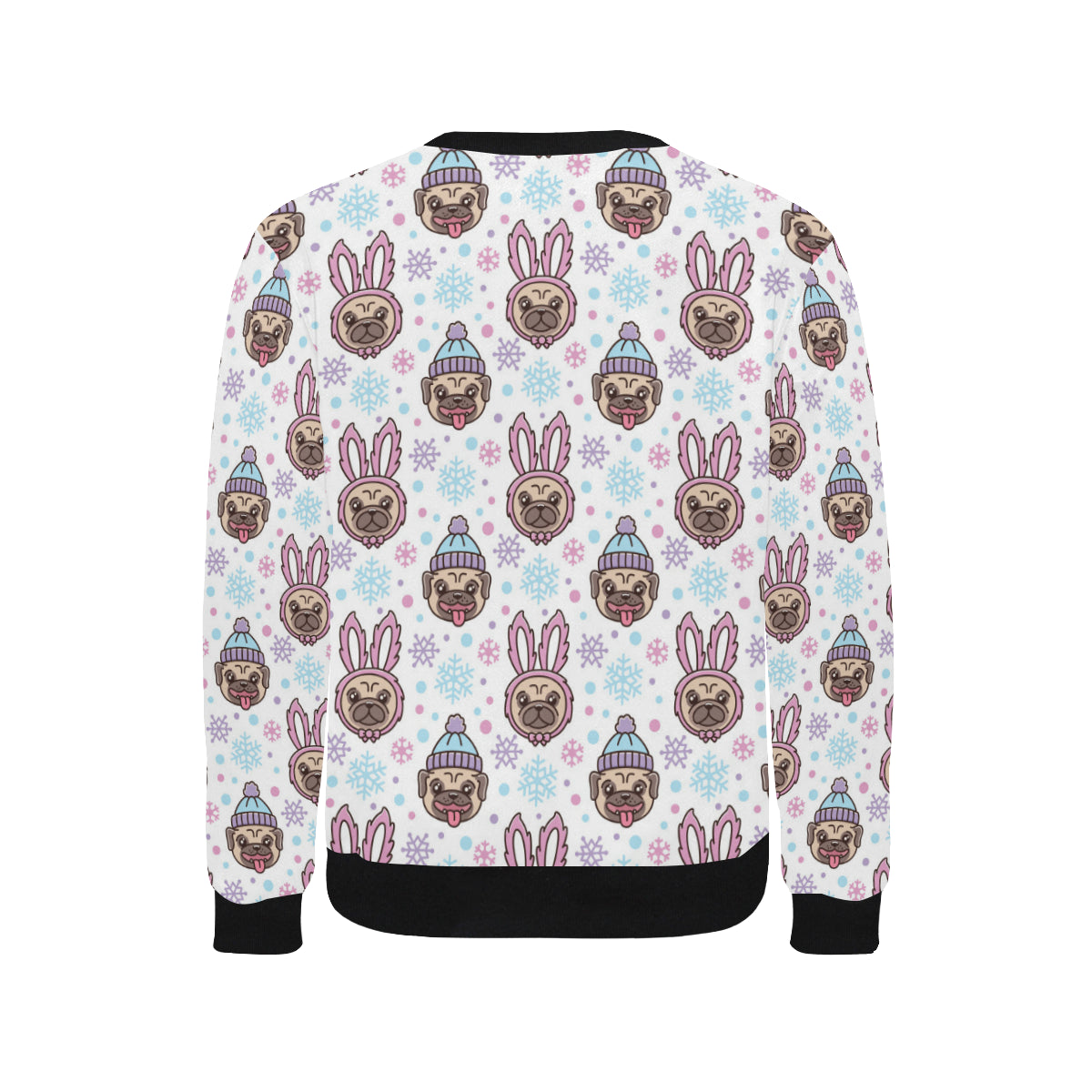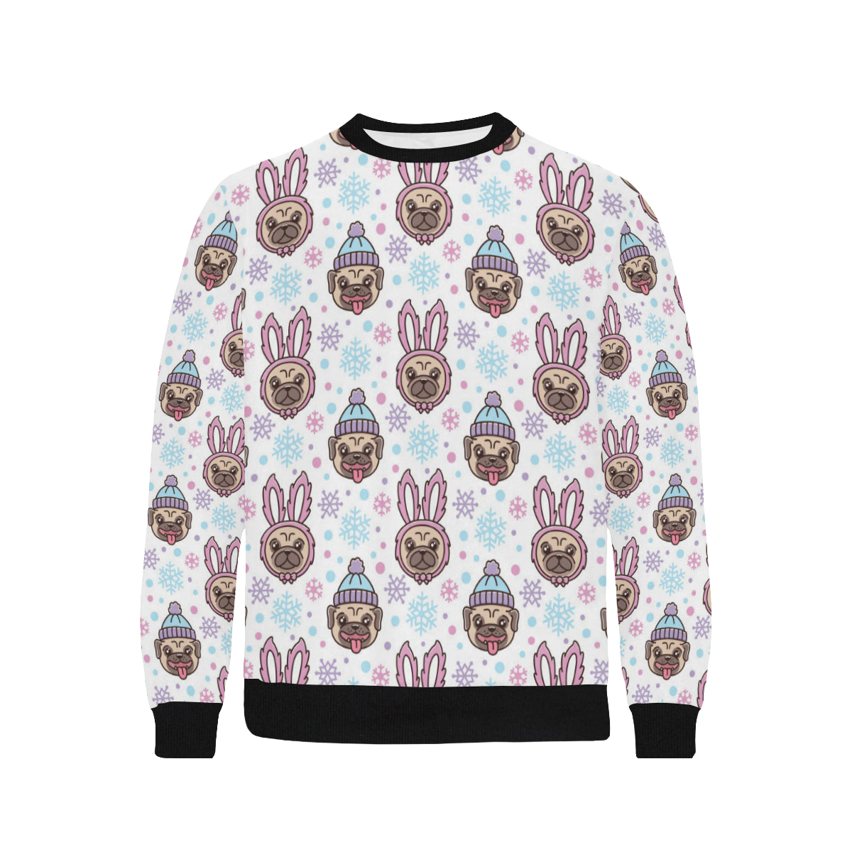 Cute pug hat rabbit costume pattern Men's Crew Neck Sweatshirt