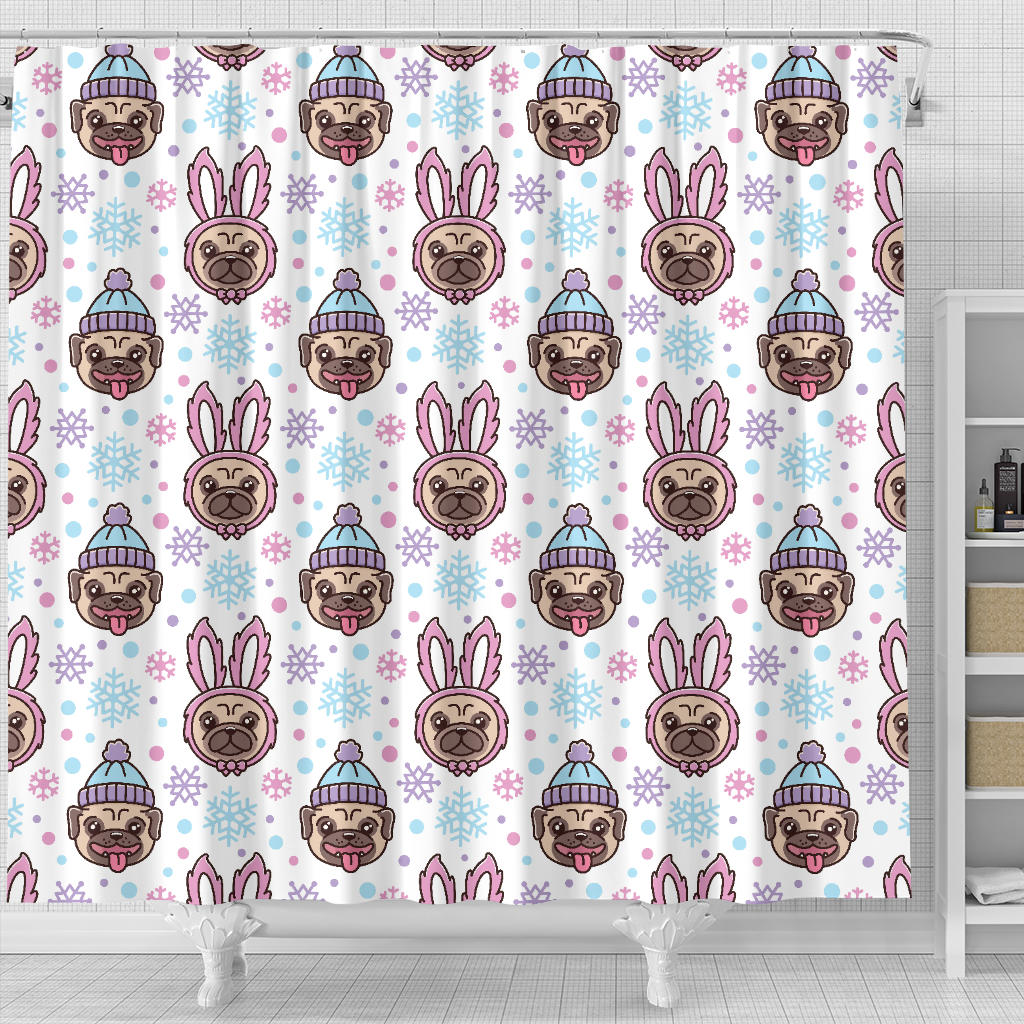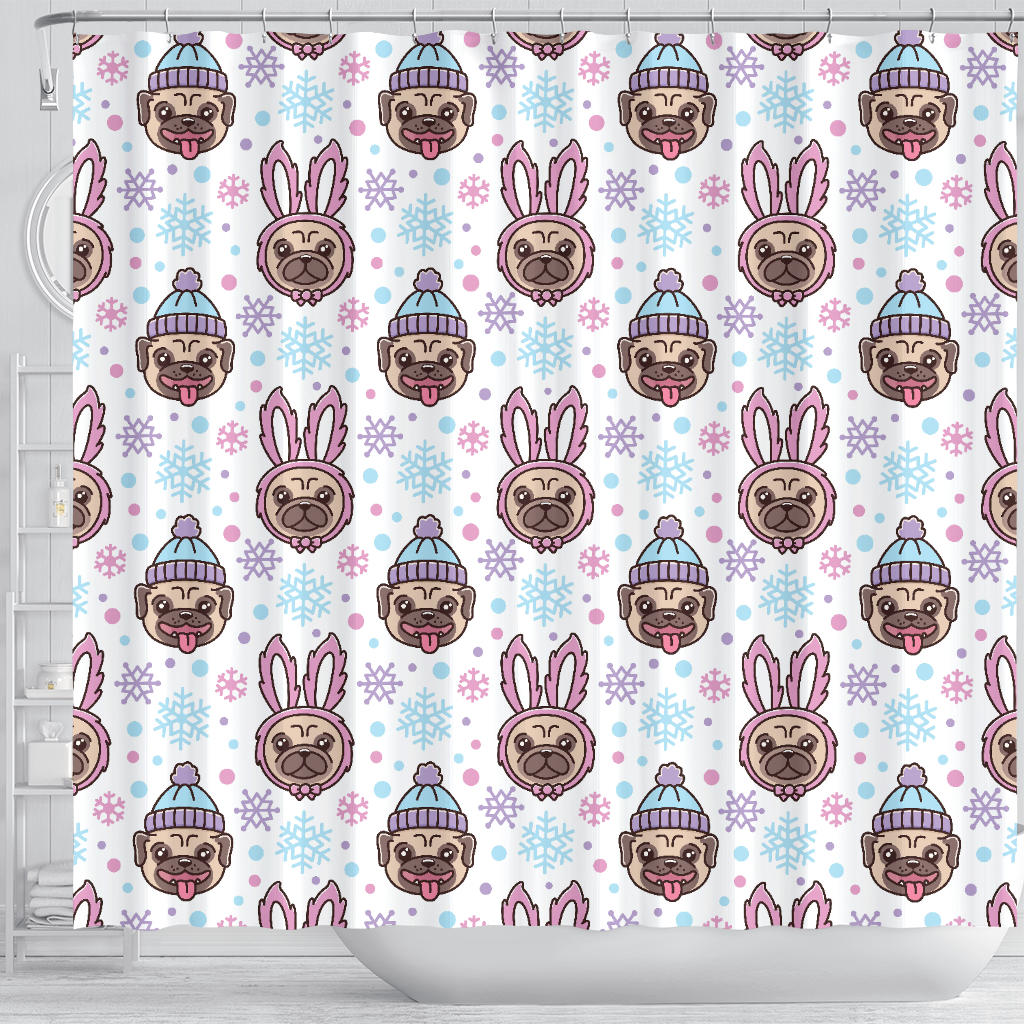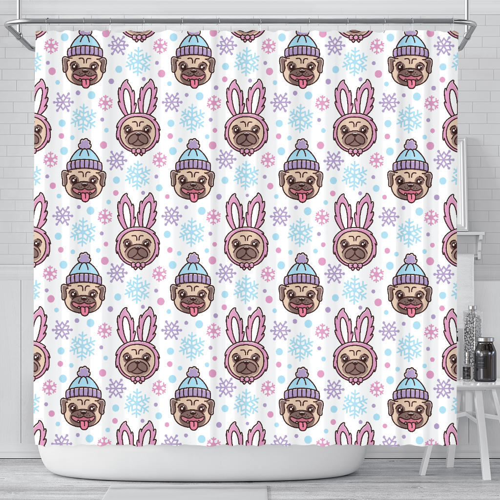 Cute Pug Hat Rabbit Costume Pattern Shower Curtain Fulfilled In US