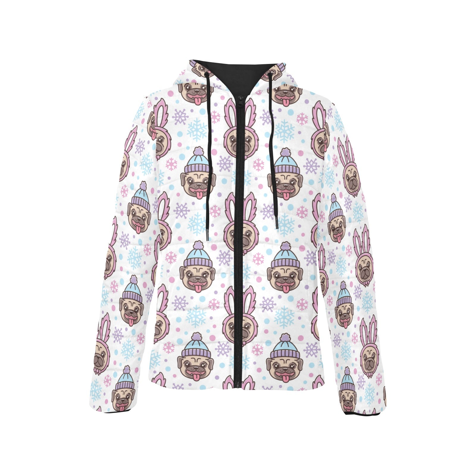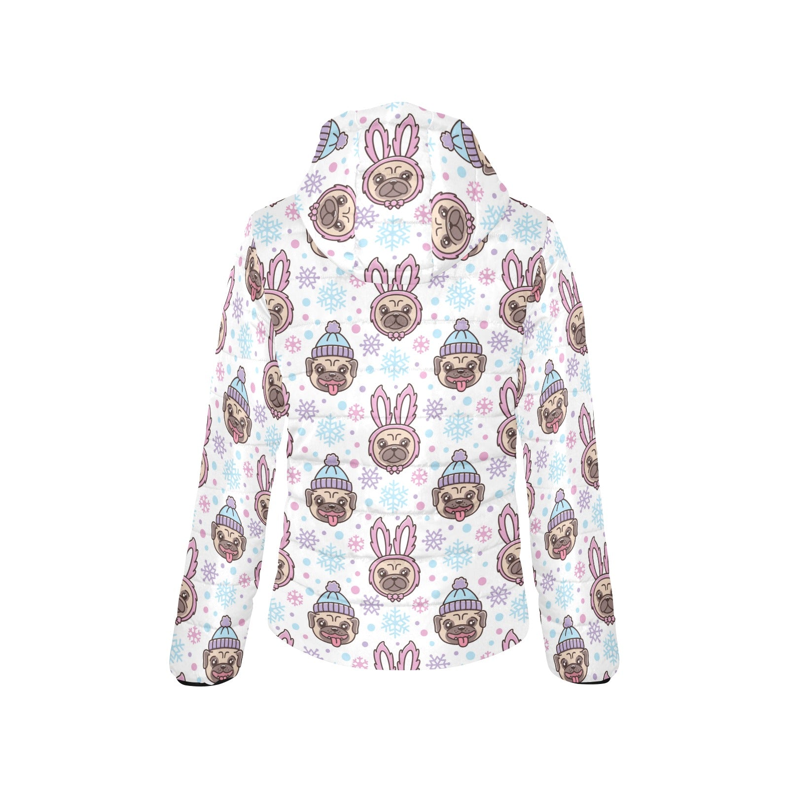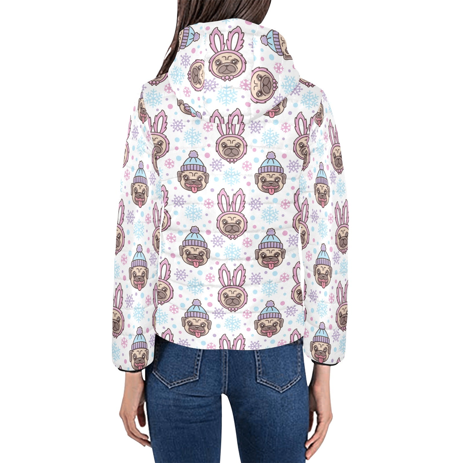 Cute pug hat rabbit costume pattern Women's Padded Hooded Jacket
