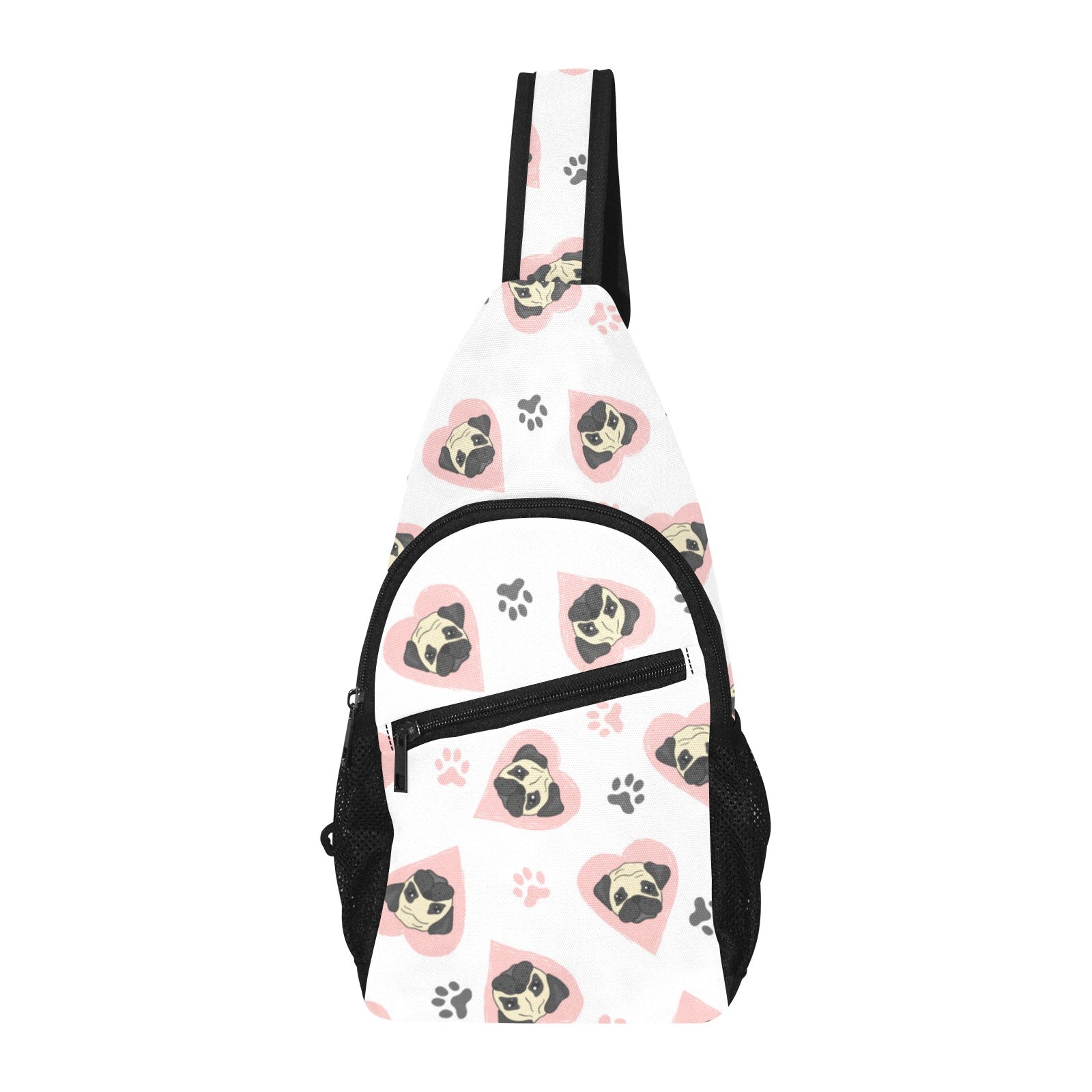 Cute pugs pink heart paw pattern All Over Print Chest Bag