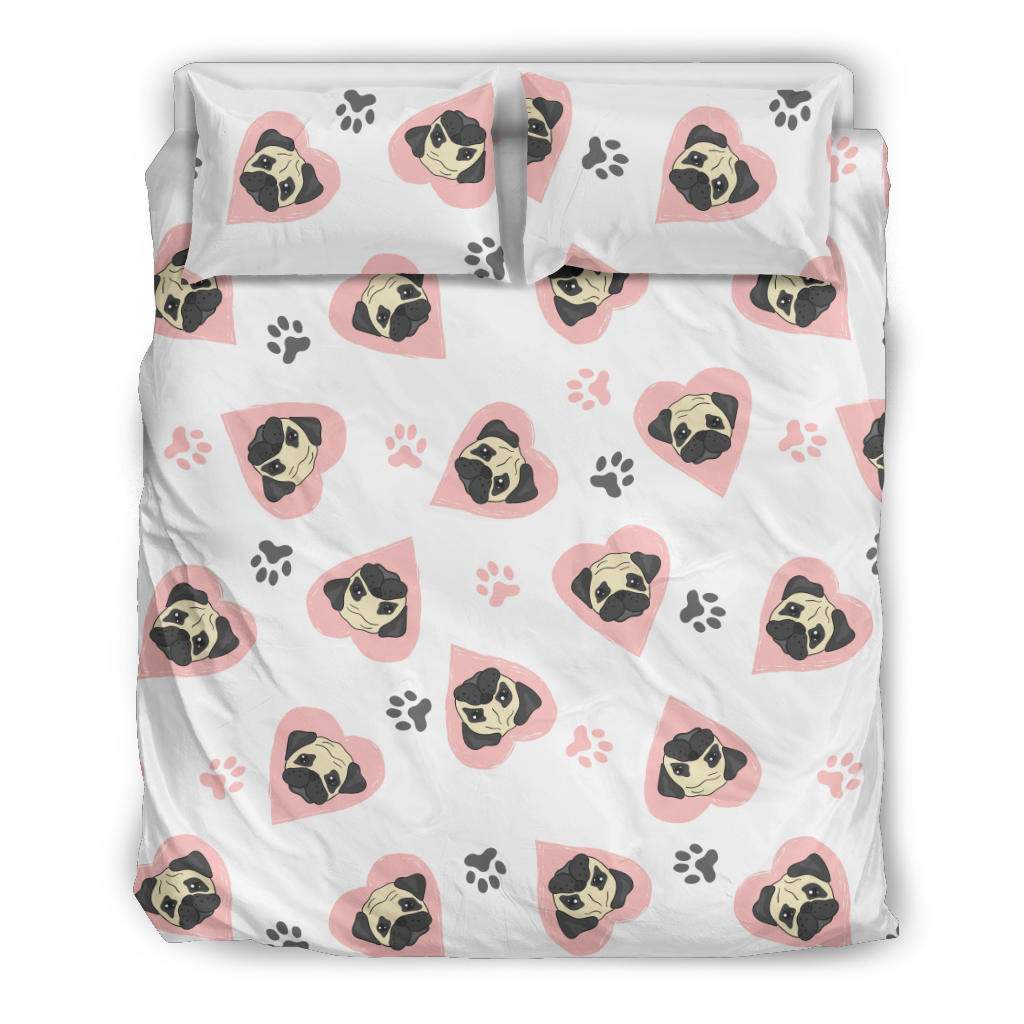 Cute pugs pink heart paw pattern Bedding Set is a uniqued design and limited item. It made to order, hand printed, and sewn with love in our factory.