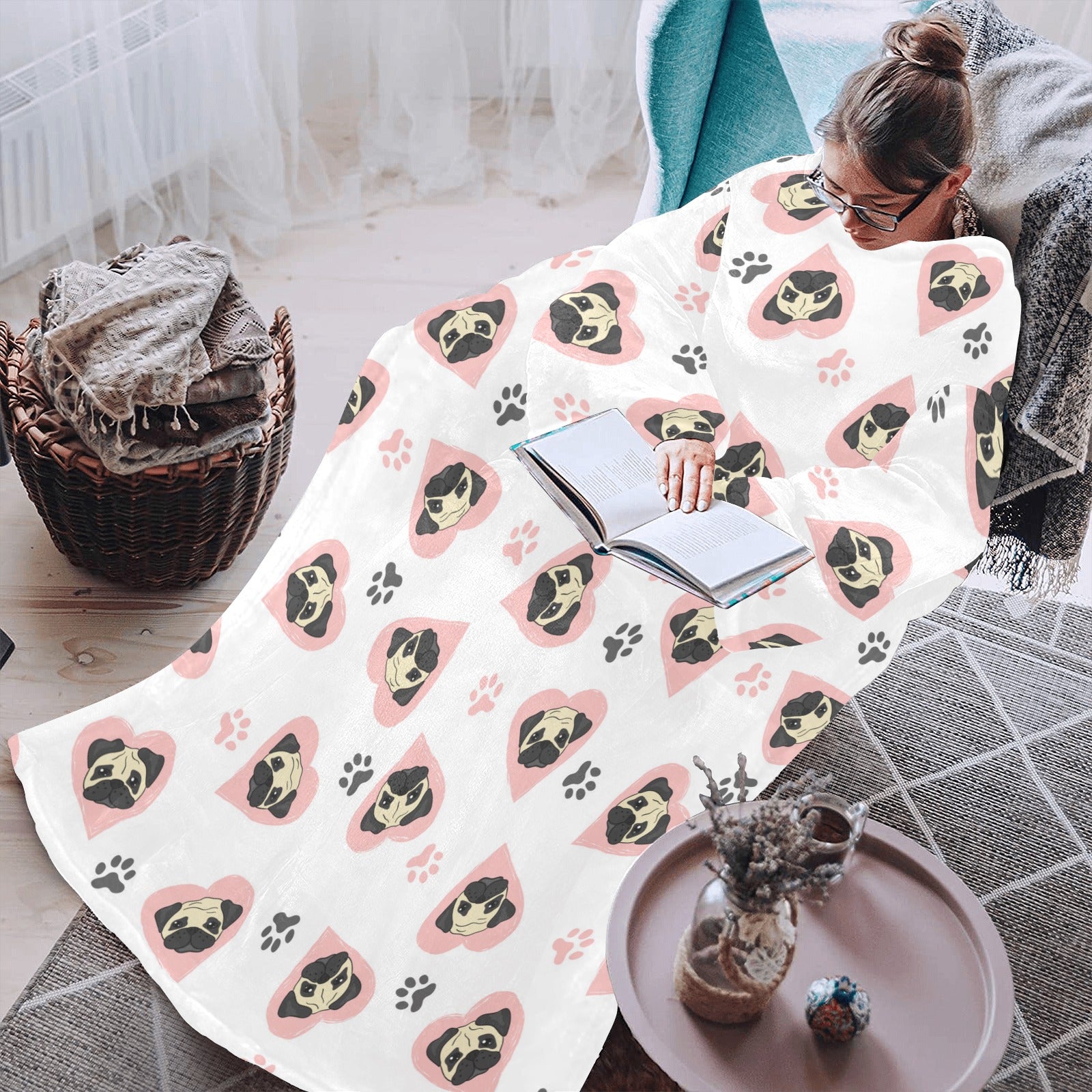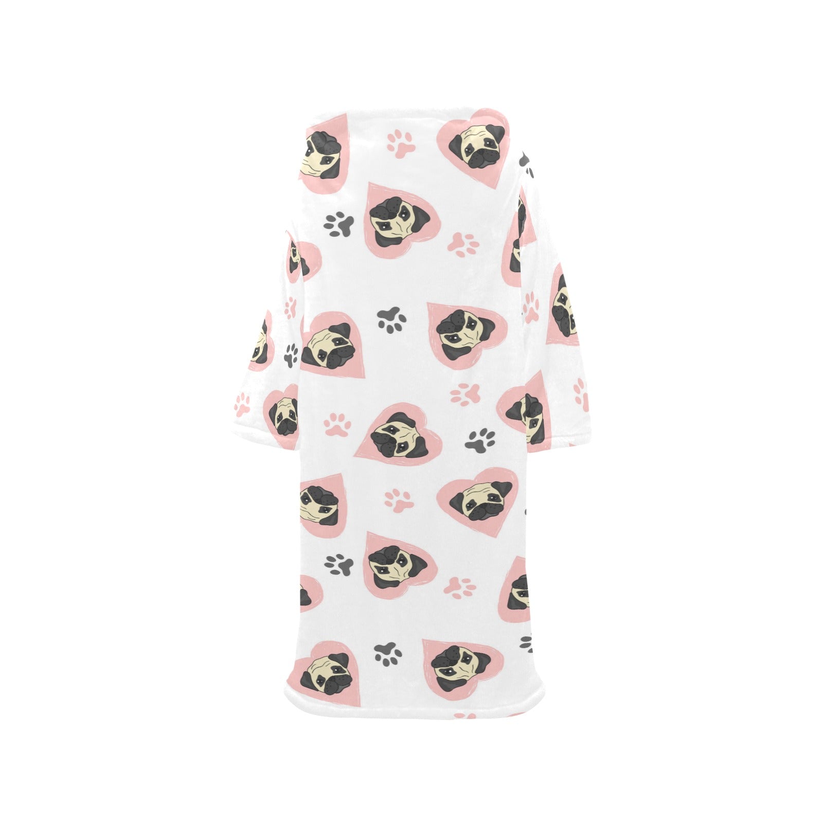 Cute pugs pink heart paw pattern Blanket Robe with Sleeves