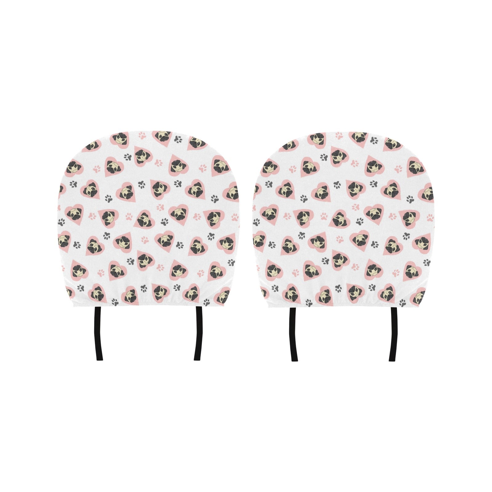 Cute pugs pink heart paw pattern Car Headrest Cover