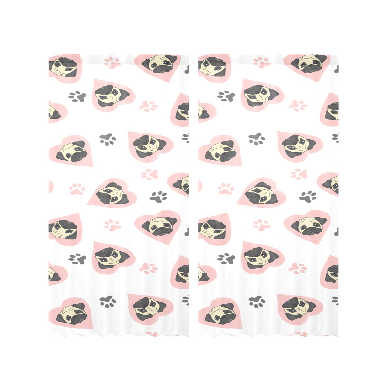 Cute pugs pink heart paw pattern Gauze Curtain