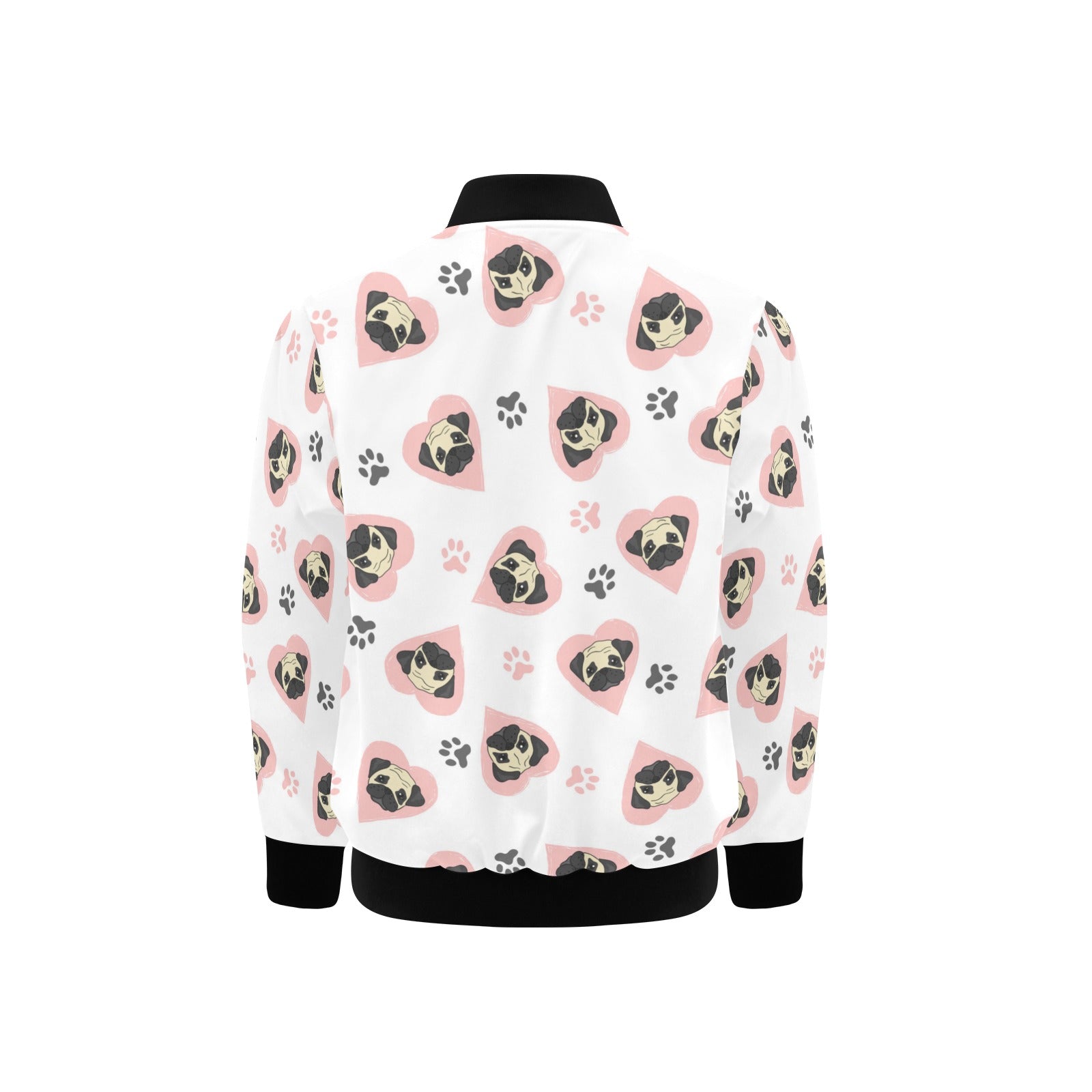 Cute pugs pink heart paw pattern Kids' Boys' Girls' Bomber Jacket