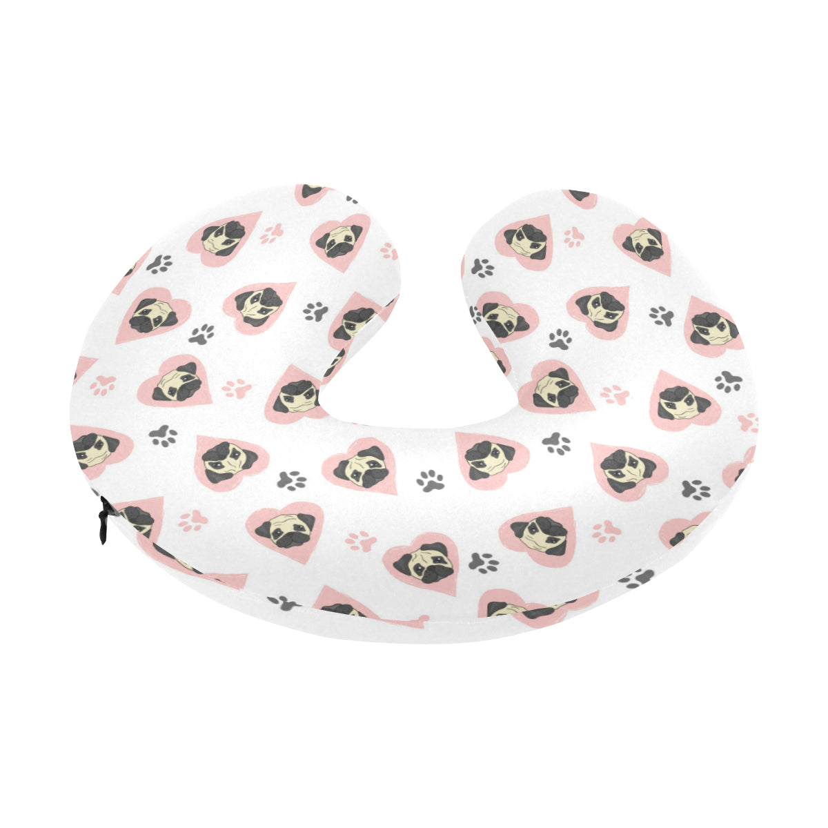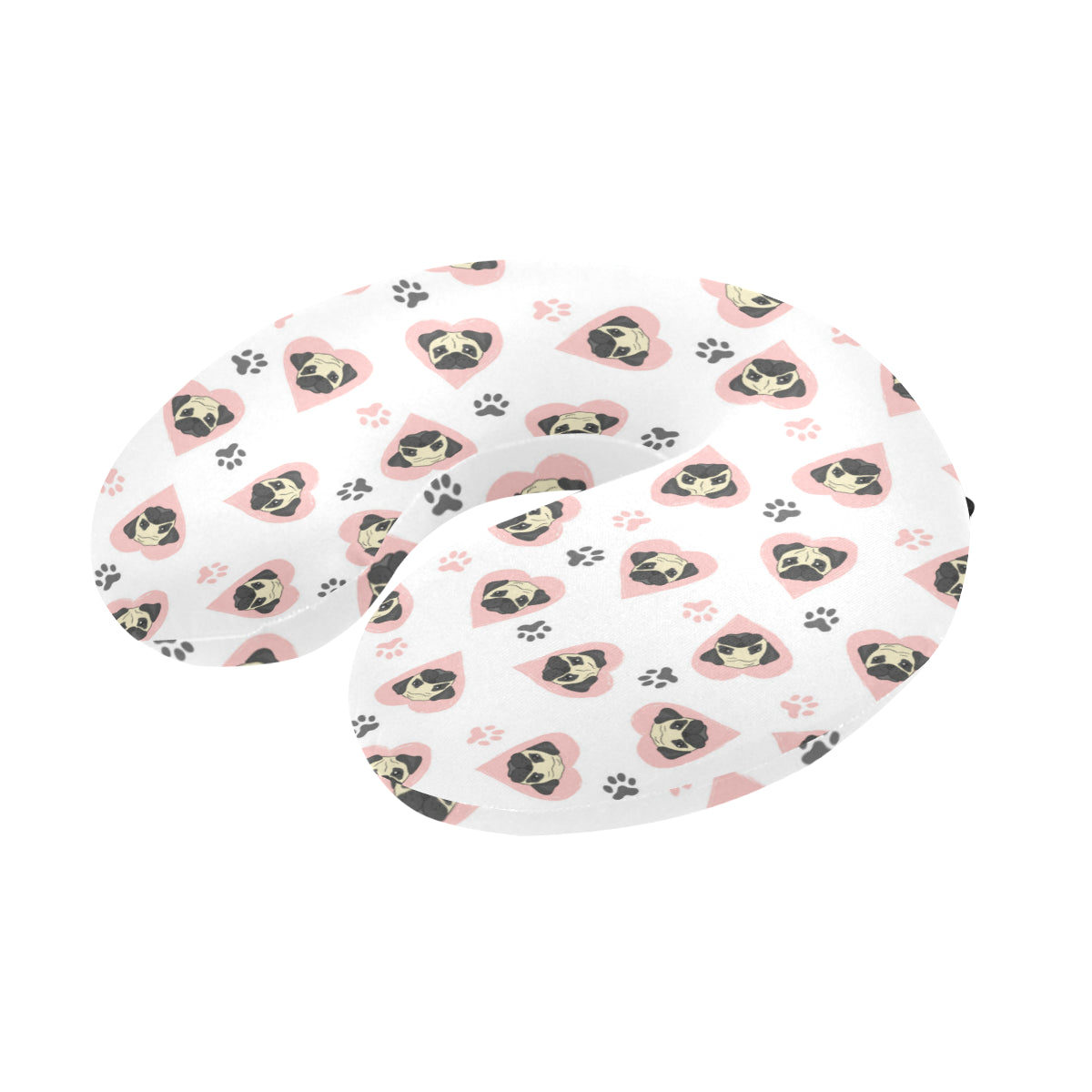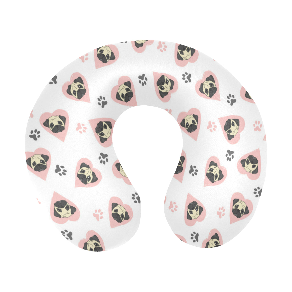 Cute pugs pink heart paw pattern U-Shaped Travel Neck Pillow