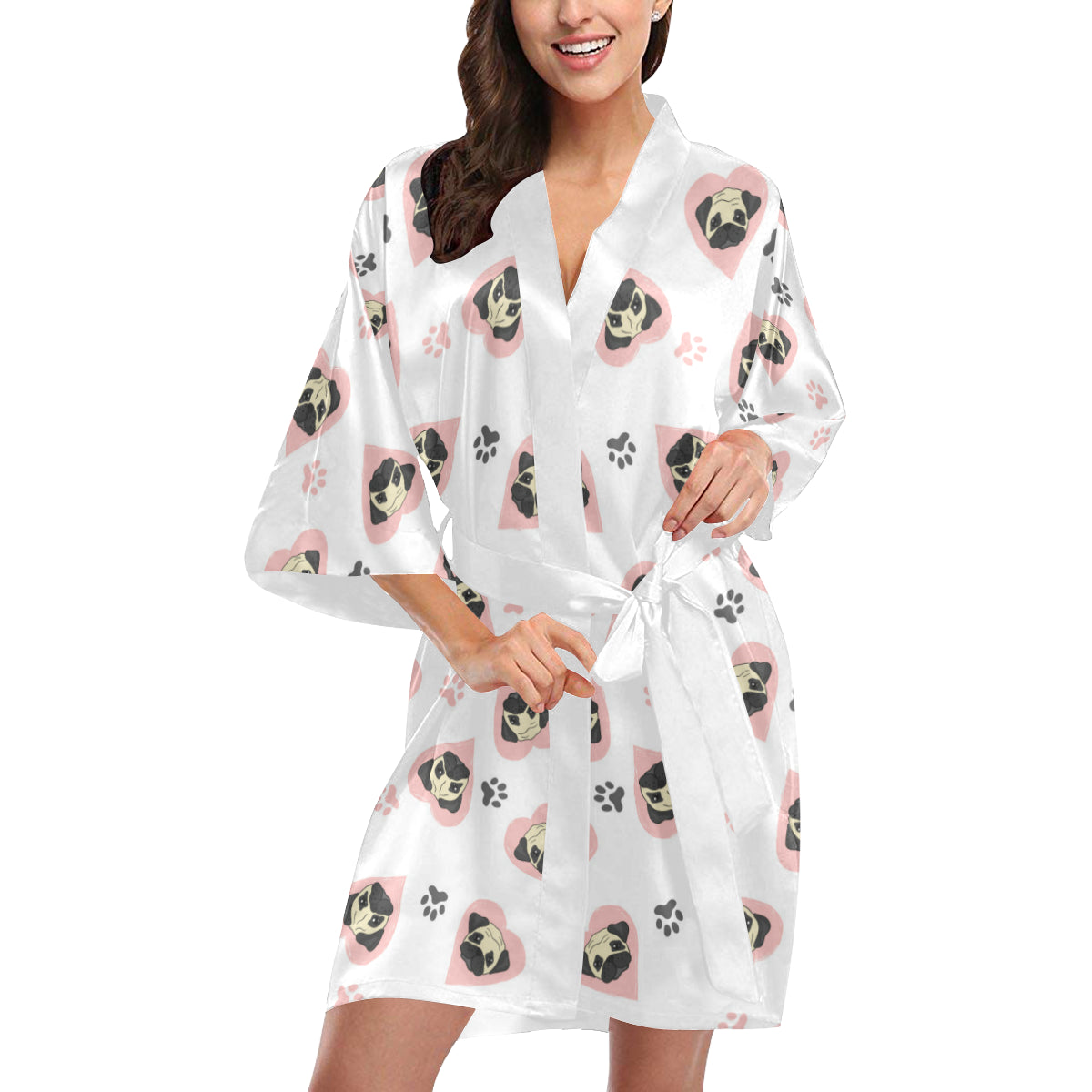 Cute pugs pink heart paw pattern Women's Short Kimono Robe is a uniqued design and limited item. It made to order, hand printed, and sewn with love in our factory.