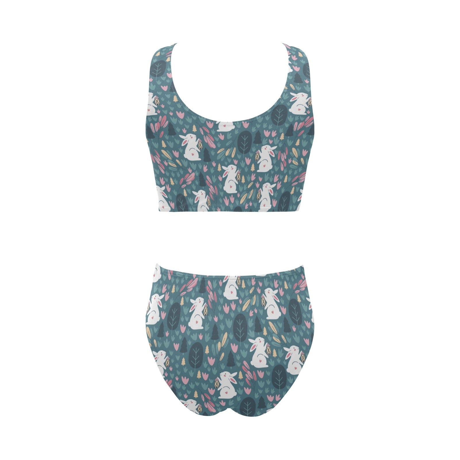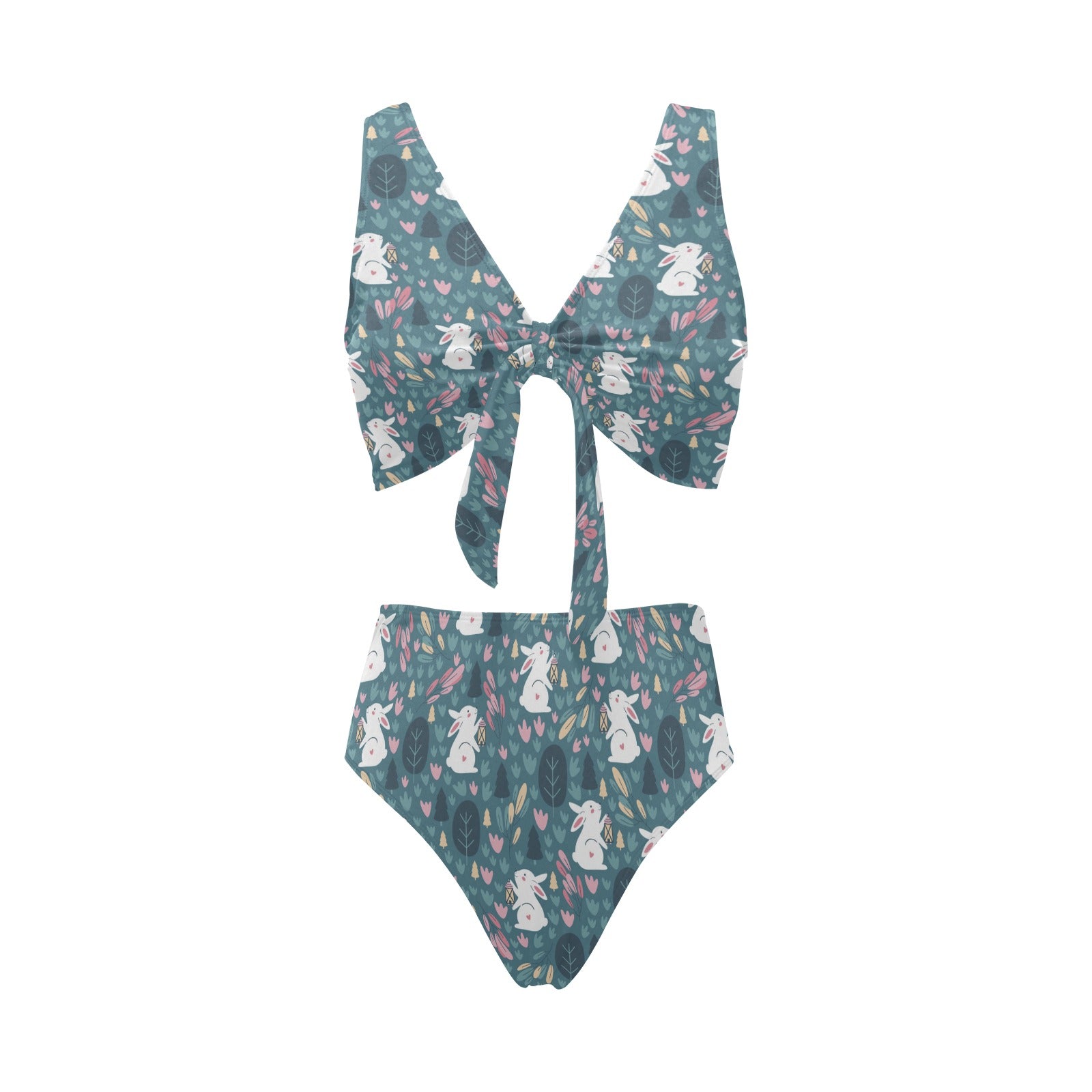 Cute rabbit pattern Chest Bowknot High Waisted Bikini Swimsuit