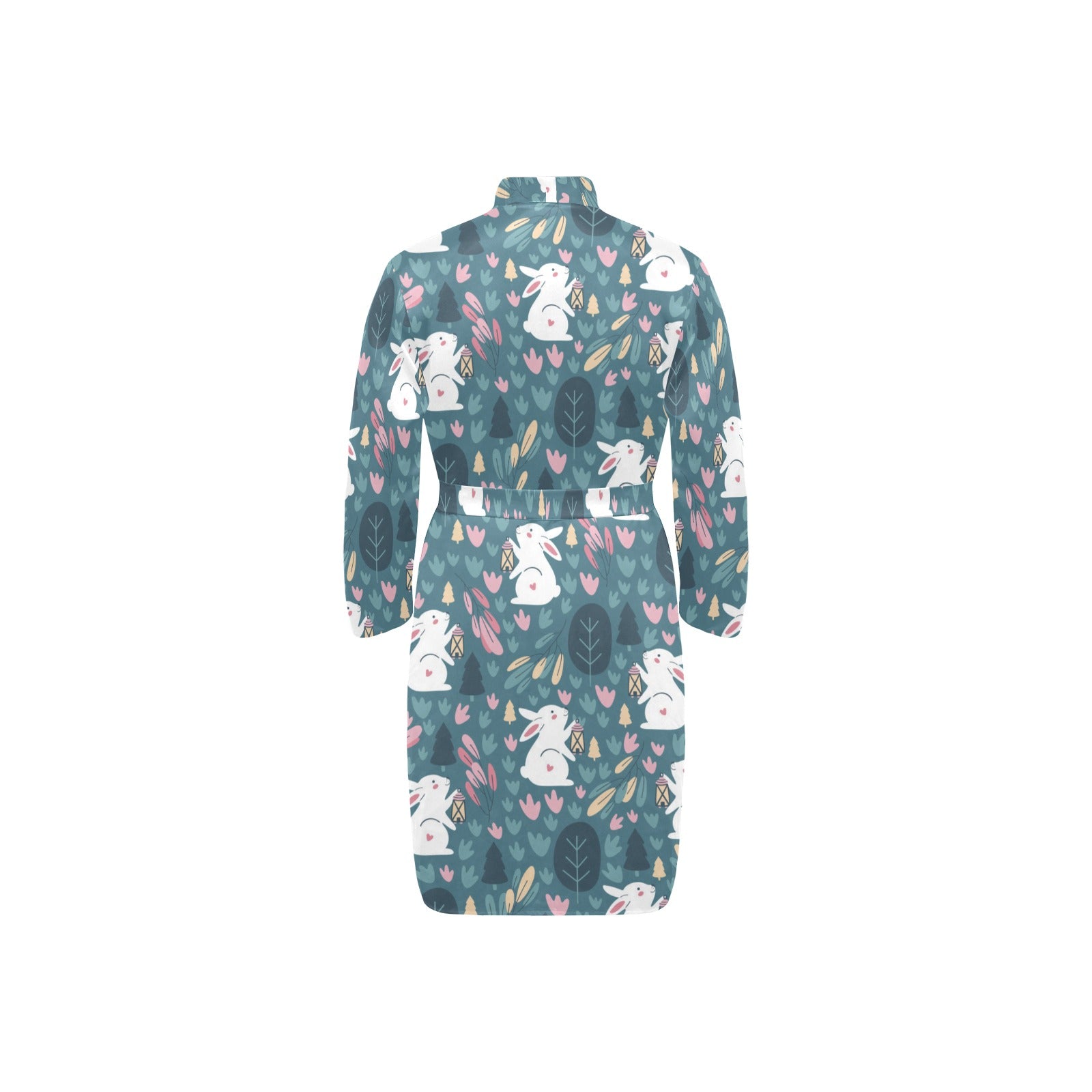 Cute rabbit pattern Men's Long Sleeve Belted Night Robe