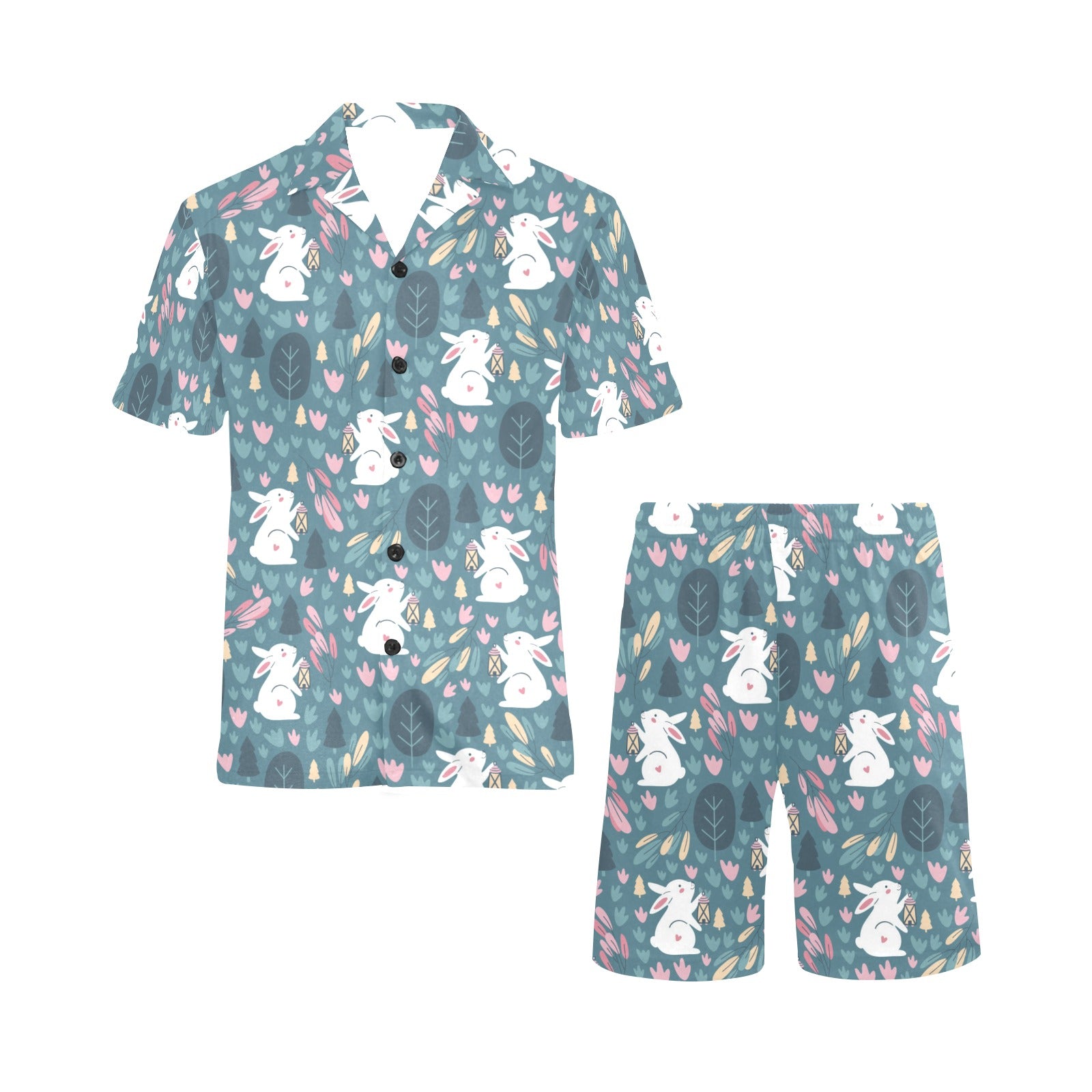 Cute rabbit pattern Men's V-Neck Short Pajama Set