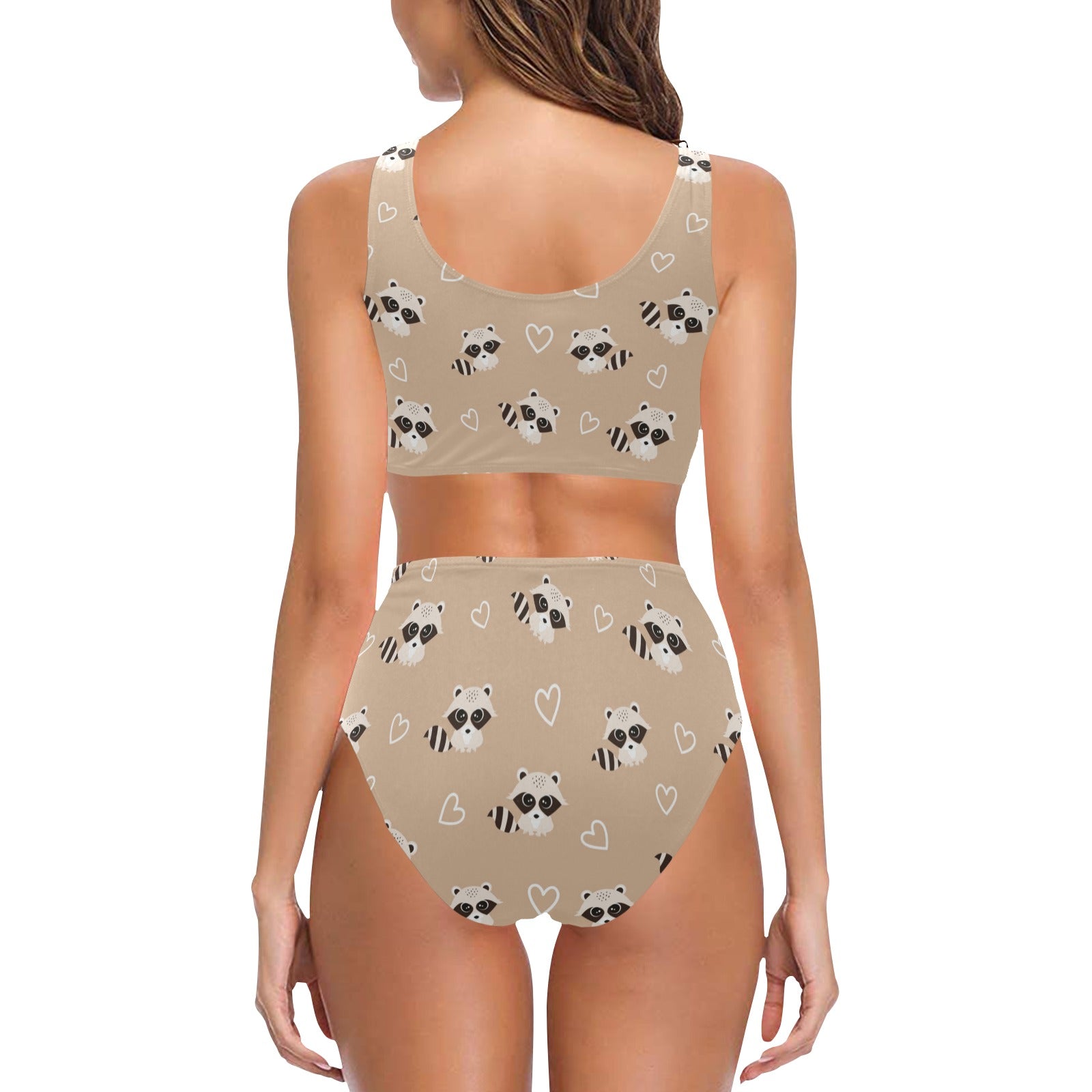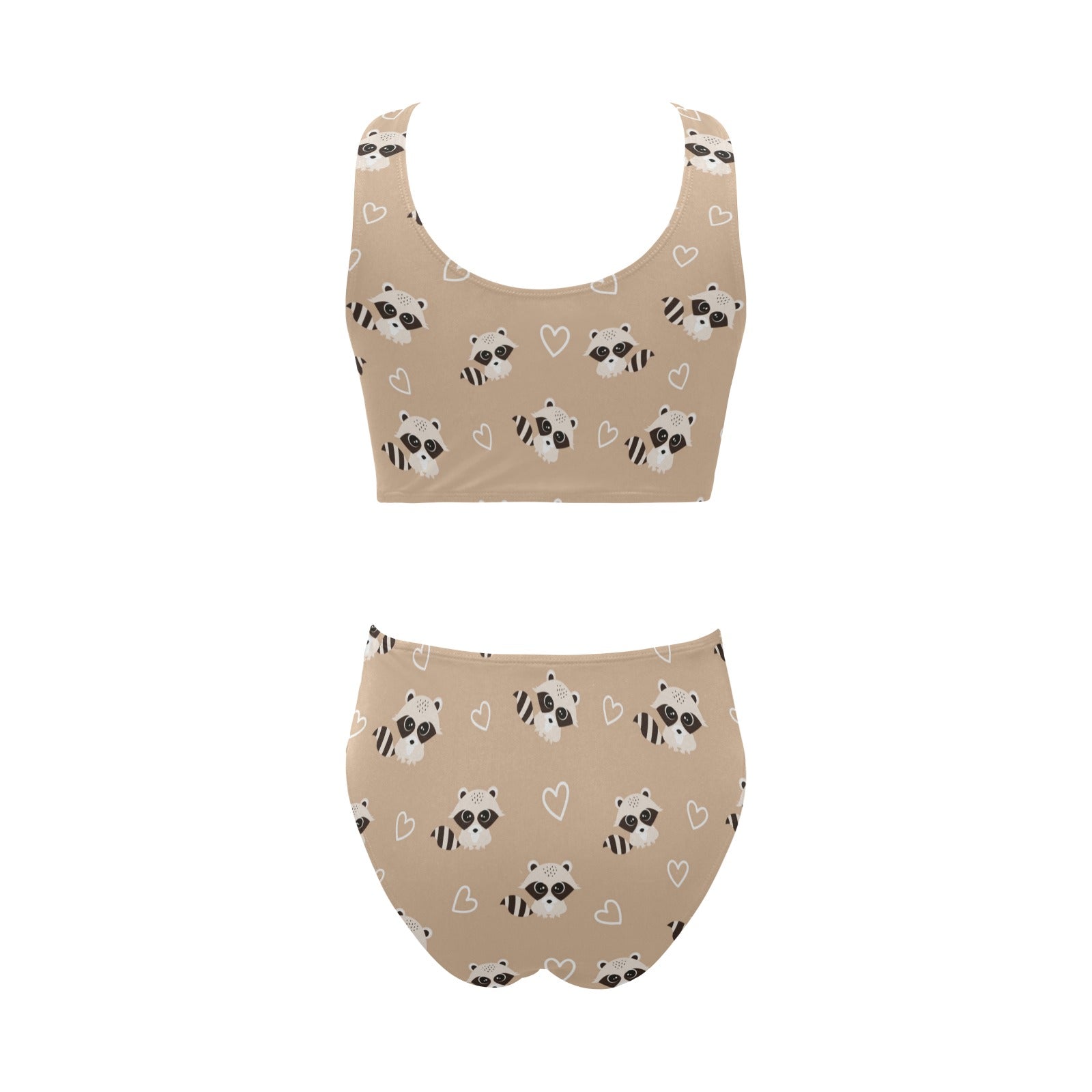 Cute raccoon heart pattern Chest Bowknot High Waisted Bikini Swimsuit
