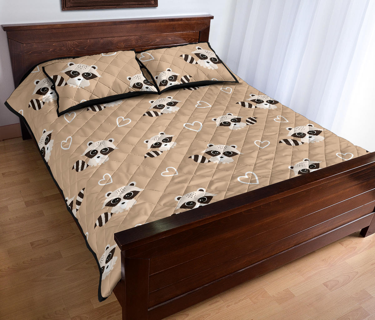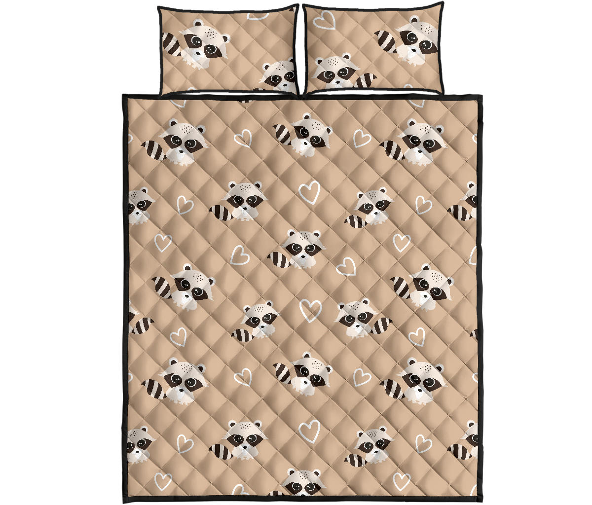 Cute raccoon heart pattern Quilt Bed Set