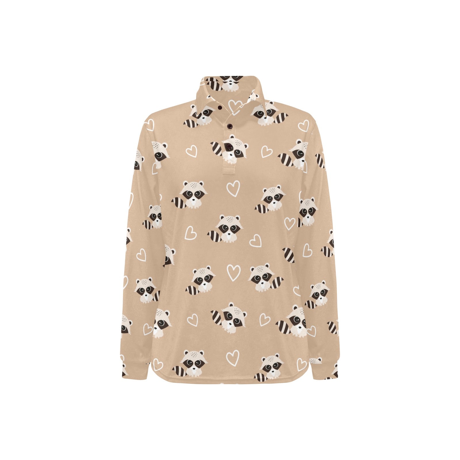 Cute raccoon heart pattern Women's Long Sleeve Polo Shirt