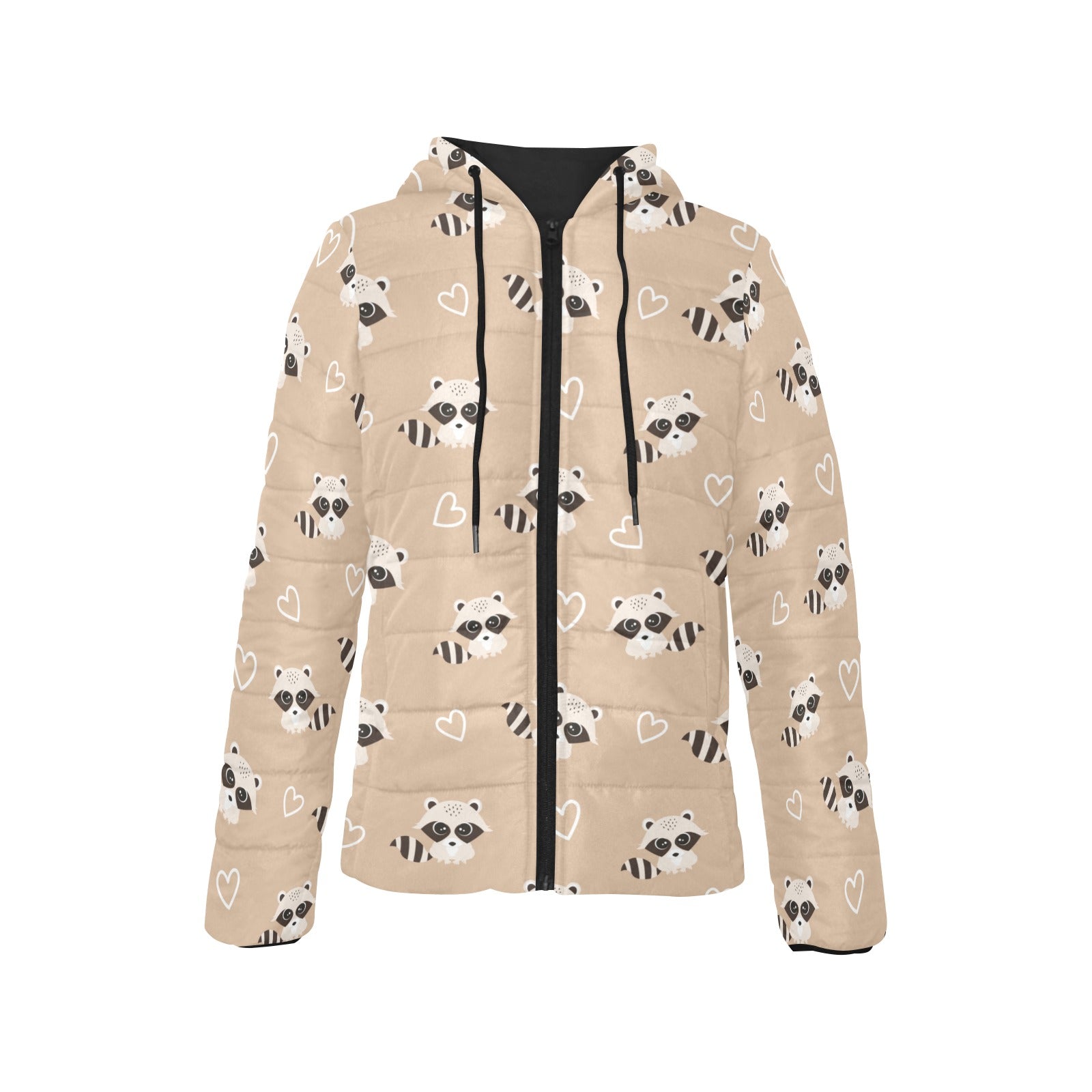 Cute raccoon heart pattern Women's Padded Hooded Jacket