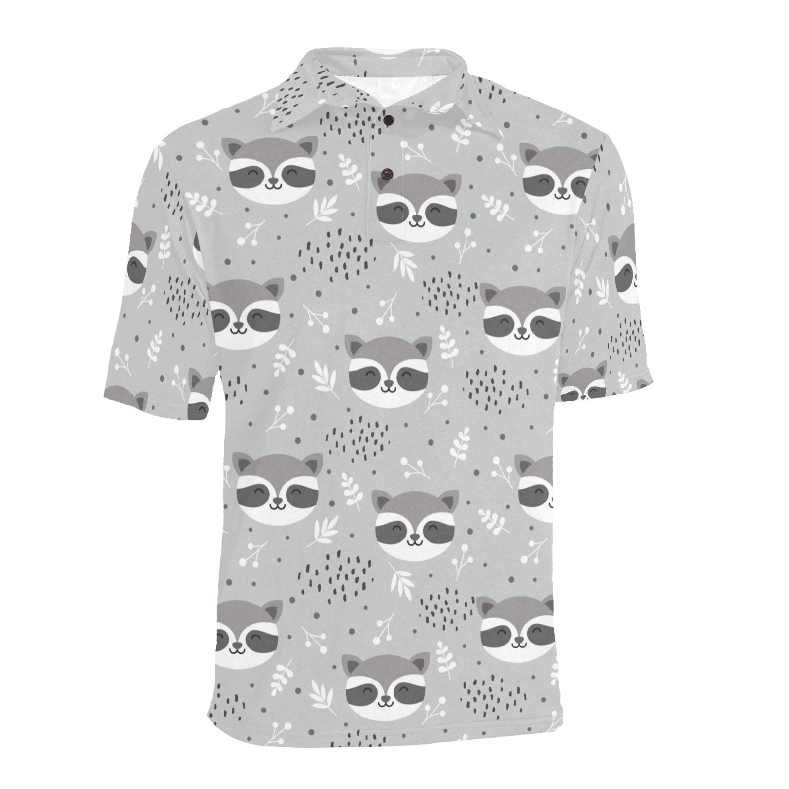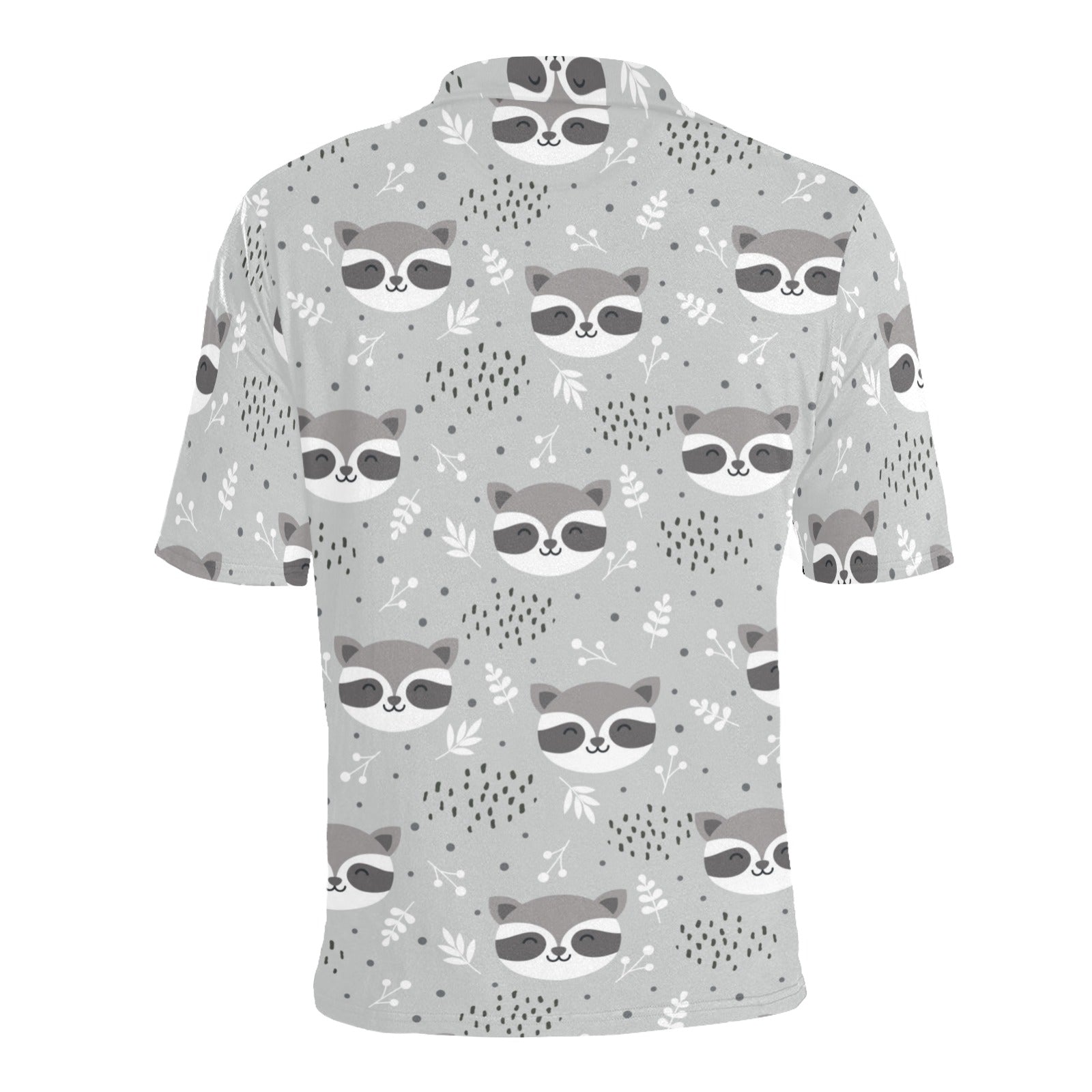 Cute raccoons leaves dot Men's All Over Print Polo Shirt