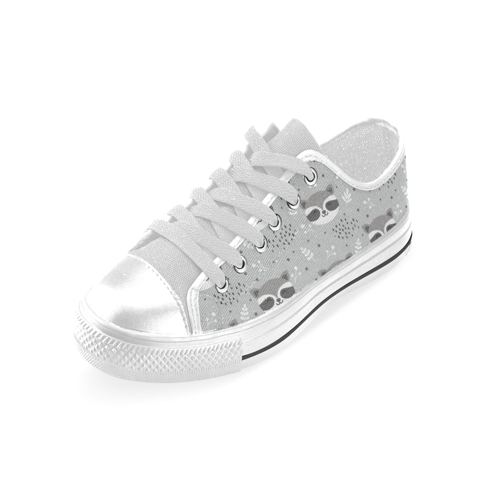 Cute raccoons leaves dot Men's Low Top Shoes White