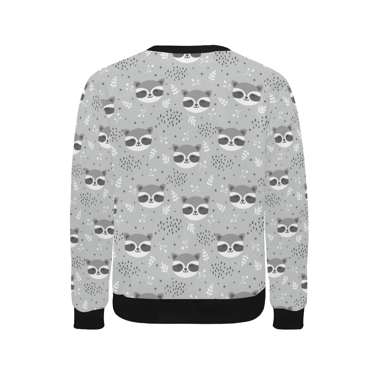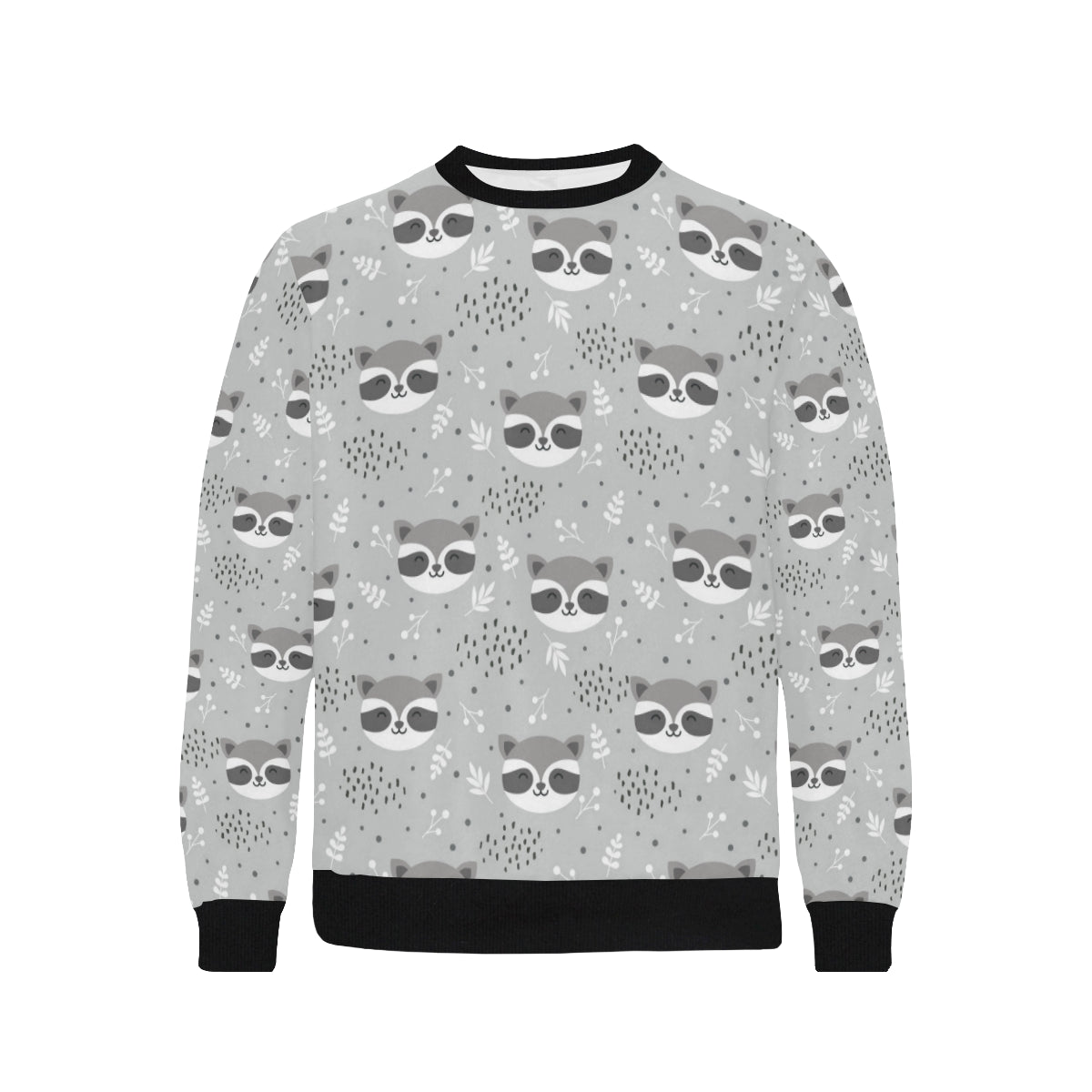 Cute raccoons leaves dot Men's Crew Neck Sweatshirt