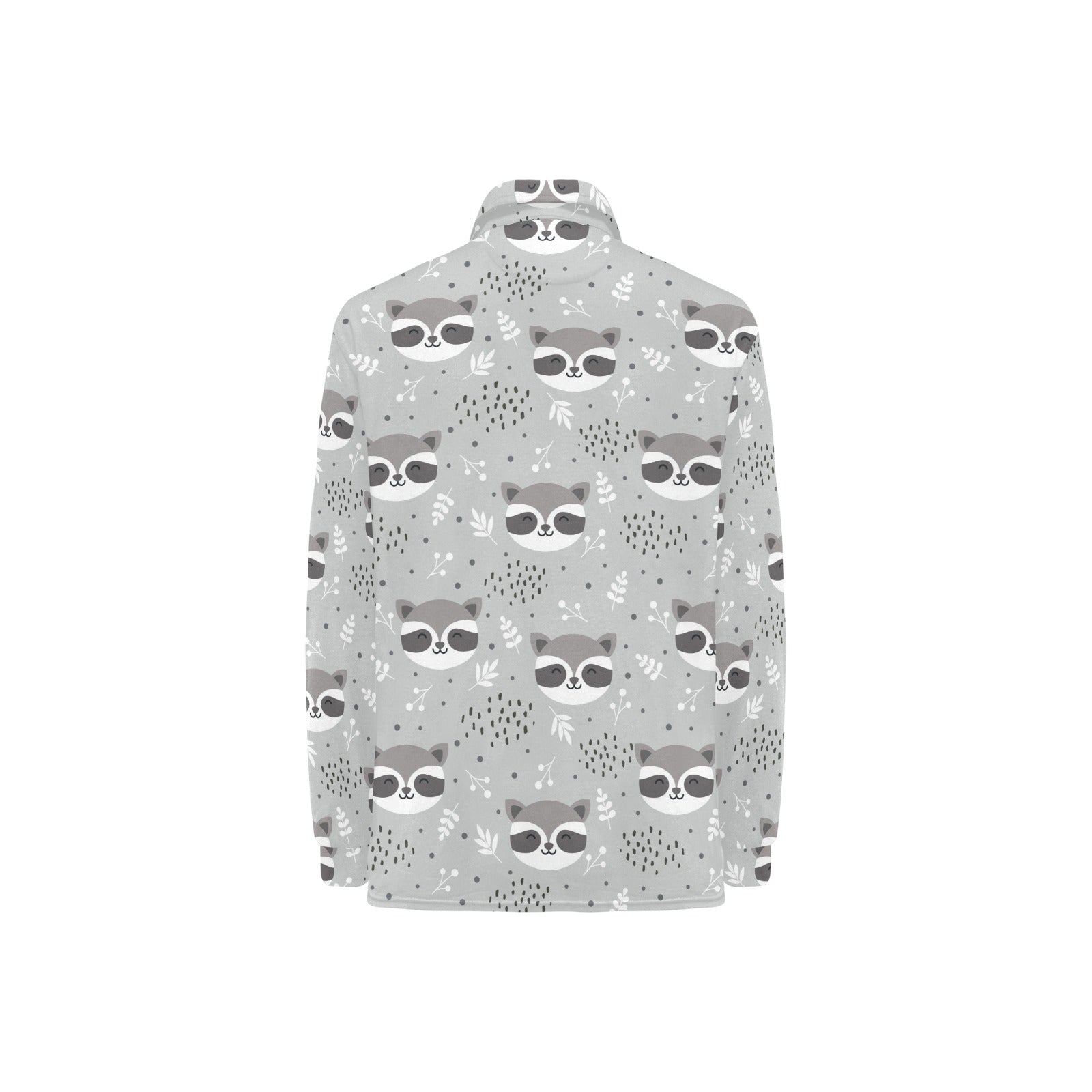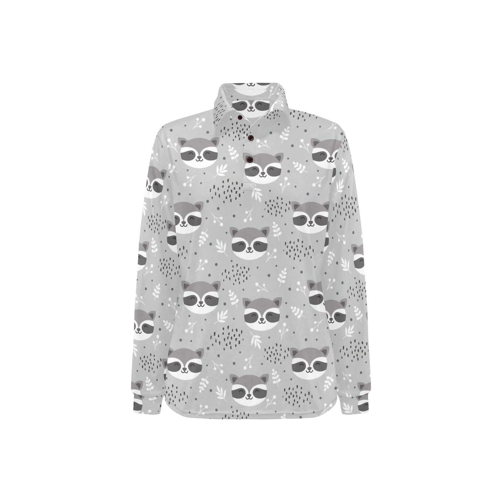 Cute raccoons leaves dot Women's Long Sleeve Polo Shirt