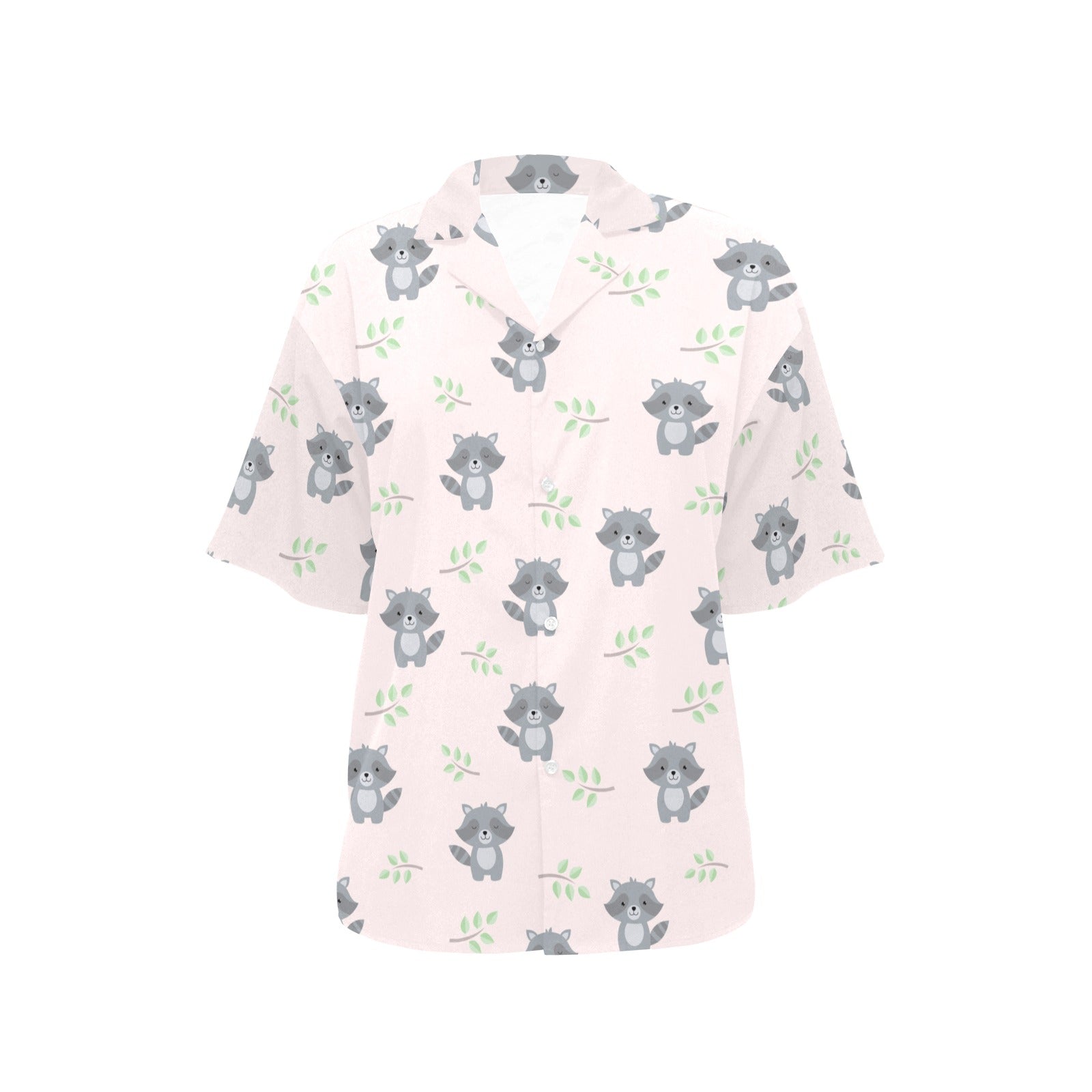 cute raccoons leaves pattern Women's All Over Print Hawaiian Shirt