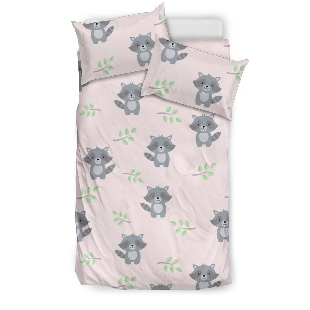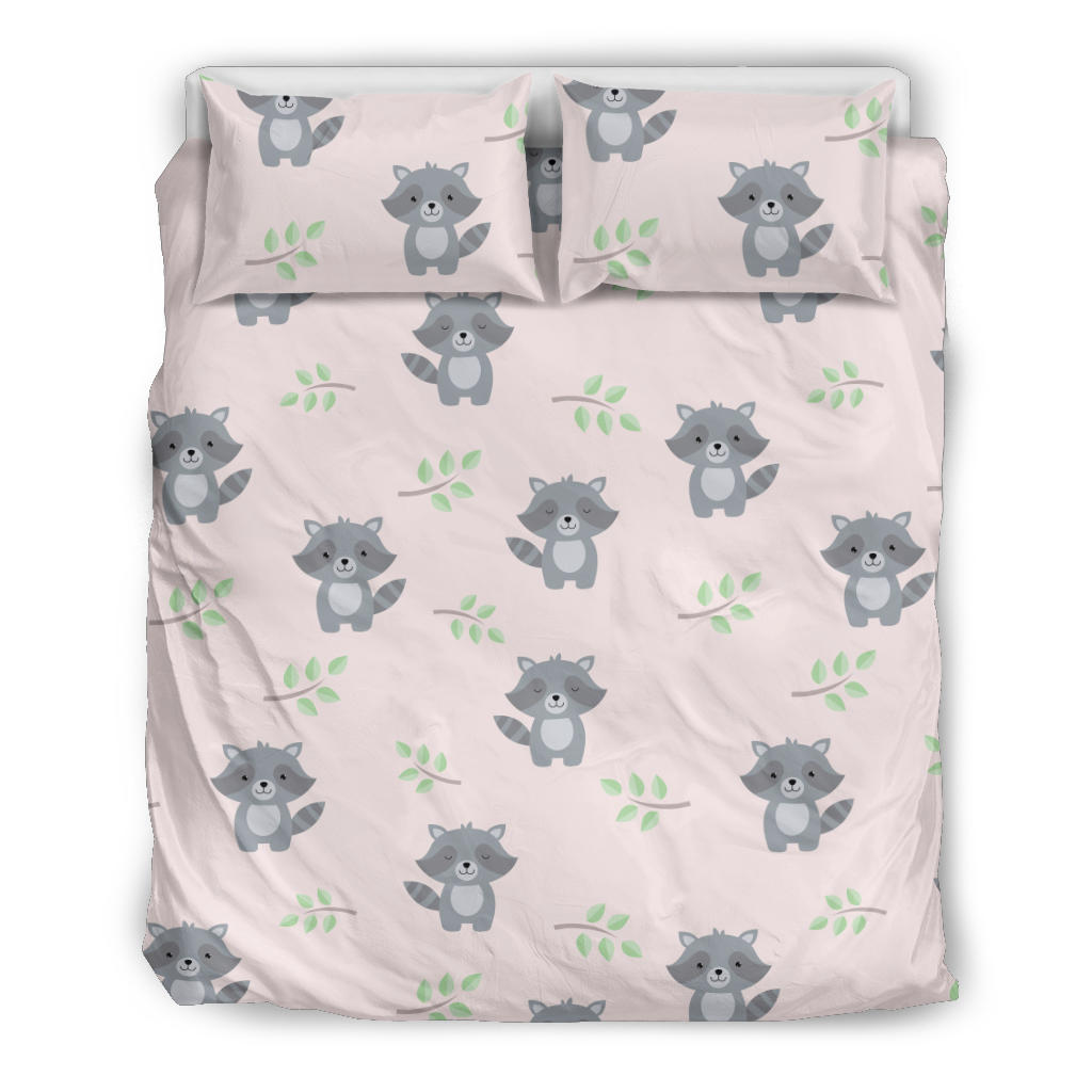 cute raccoons leaves pattern Bedding Set is a uniqued design and limited item. It made to order, hand printed, and sewn with love in our factory.