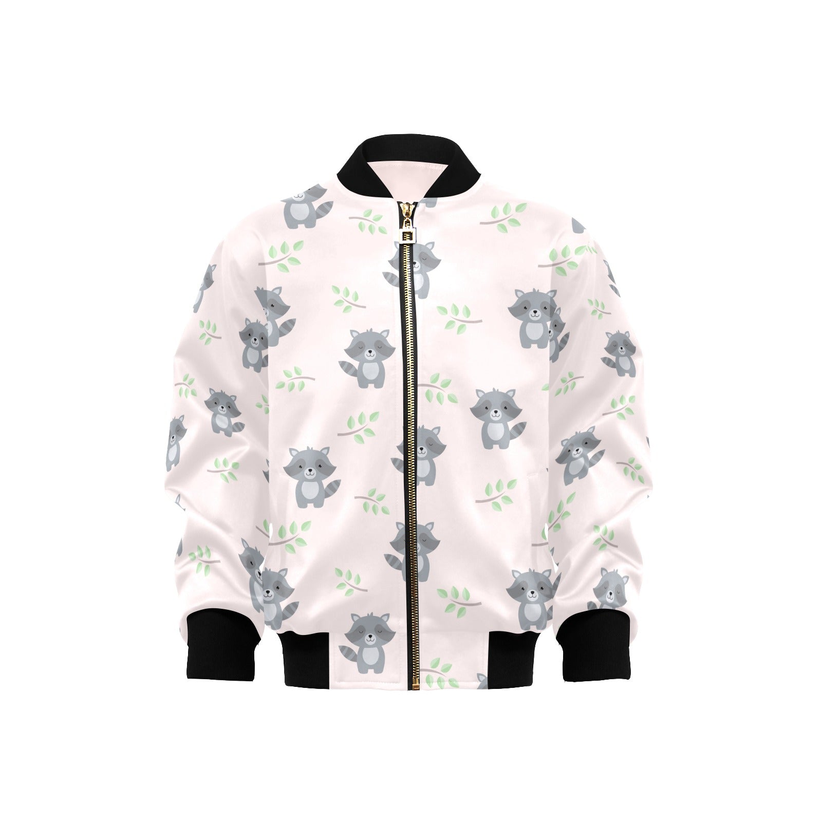 cute raccoons leaves pattern Kids' Boys' Girls' Bomber Jacket